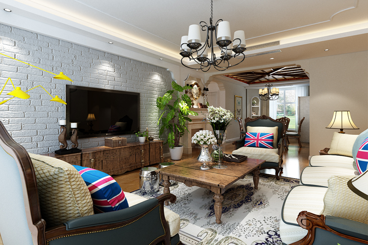 小区:奥北公元 面积:130㎡ 户型:四居 风格:美式风格