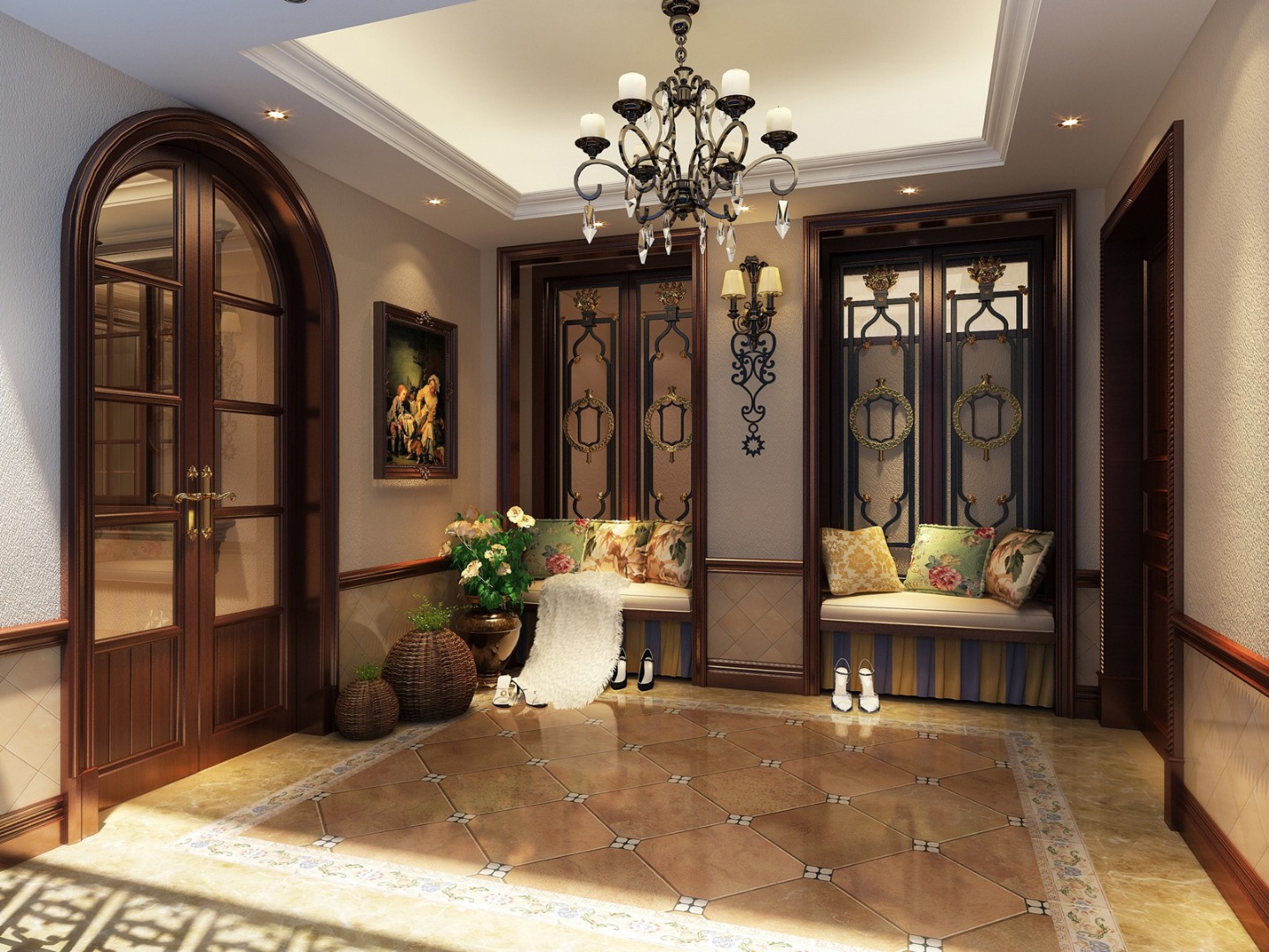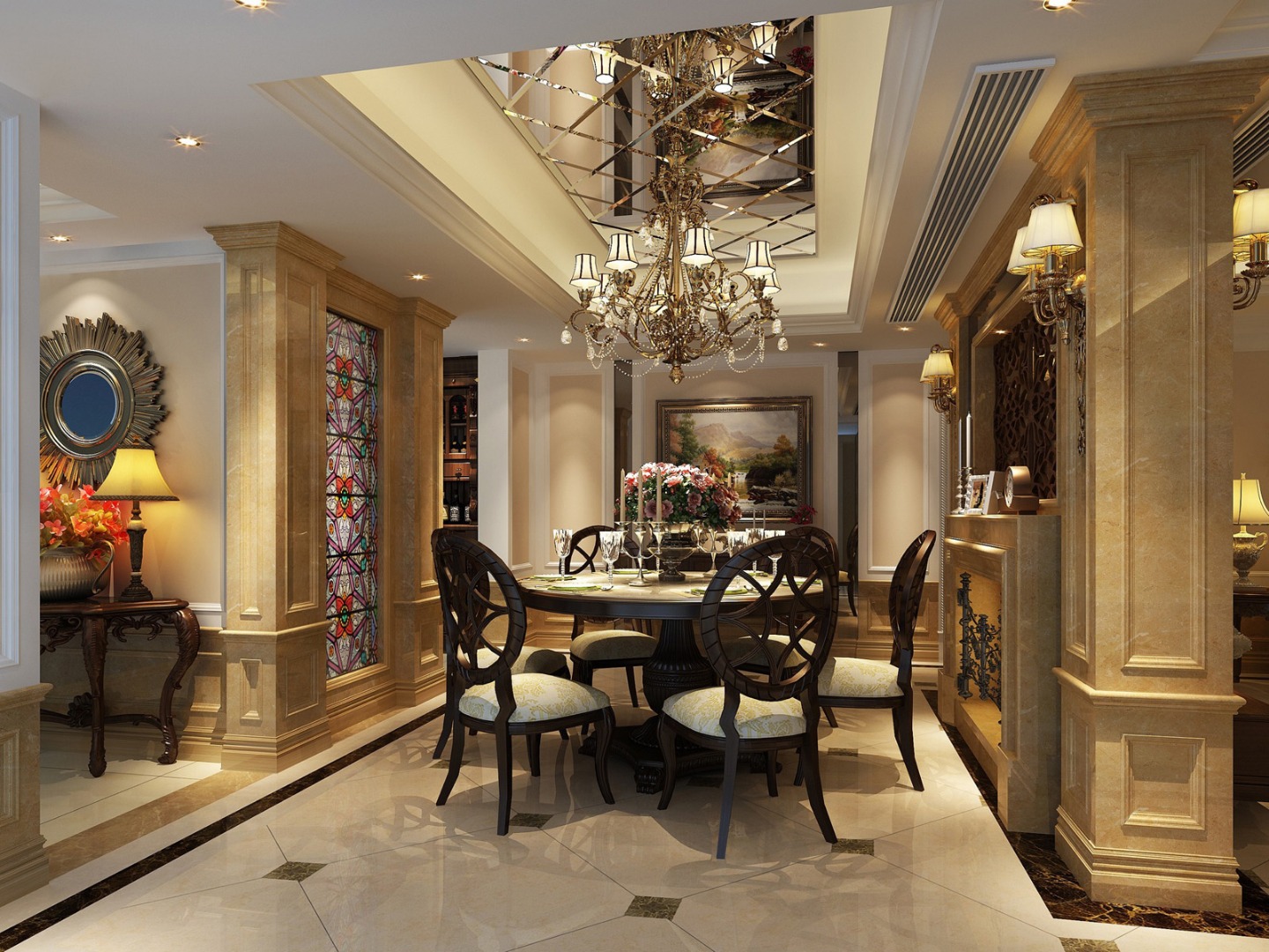 设计师说明:本案男主人喜欢欧式,但是女主人有喜欢美式,所以在风格定位上是以混搭为主,整体色调因客户年龄等原因没有太淡,主要偏深沉一点,造型上面告别浮夸欧式造型但是融入了欧式部分元素,使得整体硬装上凸显出了大气之感,但又不失温馨之气!