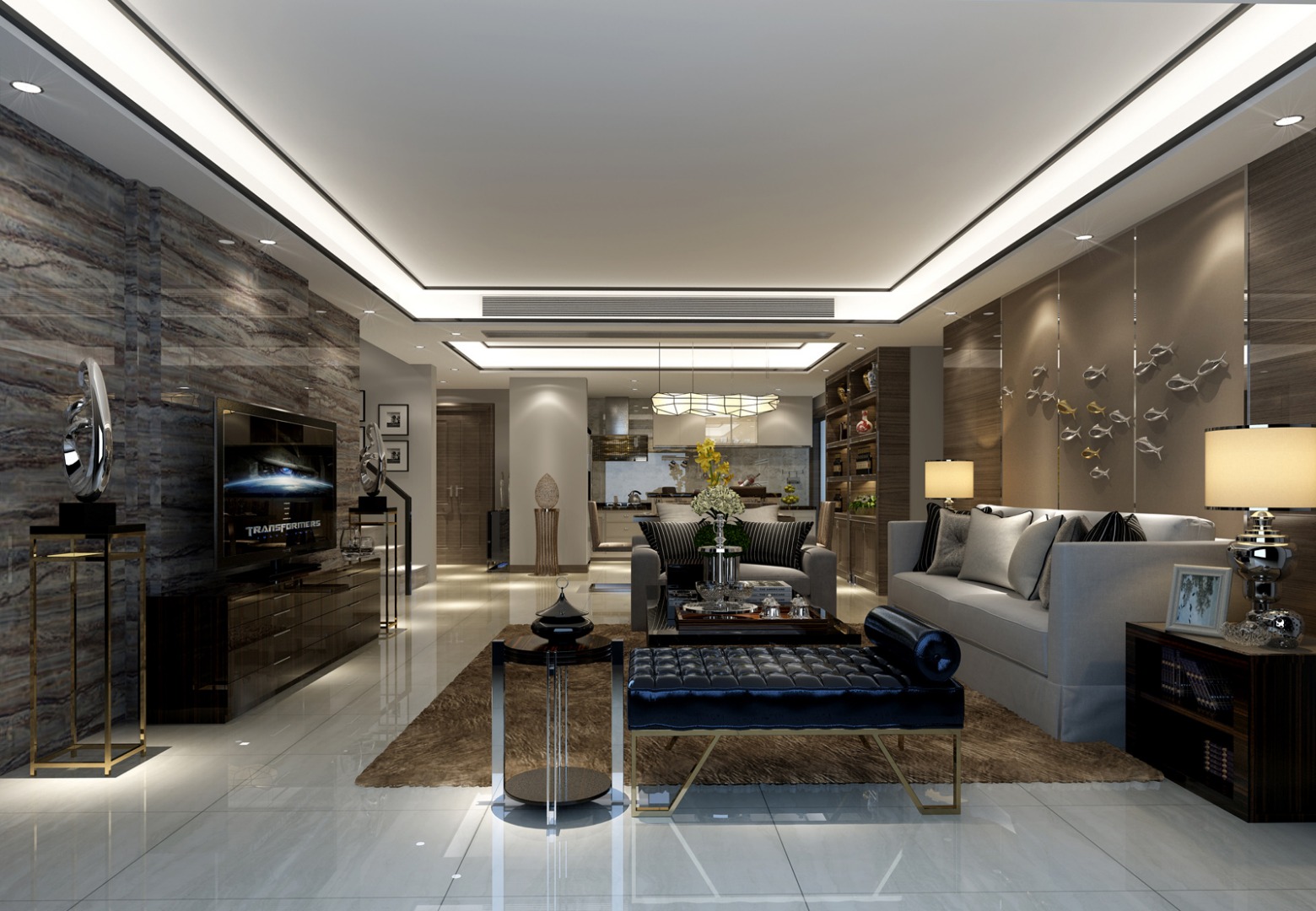 本案设计采用现代风格与港式设计相交融的方式,力图营造出让人回味无穷的空间感受,在设计过程中,设计师通过了解客户的生活习惯及对居家的要求确定了最后的平面布置。