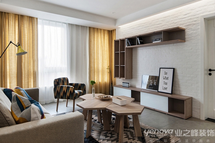 设计说明:设计师在设计中选用了简单的风格搭配,跟年轻人的想法更加贴合简单的背景已经吊顶造型是房子最大的特色,目的是给房子留下无限的软装空间,在电视的背景墙选择上,设计师用了砖做了效果,让家的风格别具一格卧室中设计师在软装布艺上选了灰蓝色,还原本质的风格,背景画个性有趣味.卫生间是业主最为满意的地方,白色搭配金色元素的风格,是整体的亮点.!书房,用了灰色作为房子的基调色,木质的书柜,也是让房子有特色的地方.餐厅中的特色就是背景墙以及背景画,原始的造型与点缀.入户的位置做了穿衣镜的处理,还有鞋柜的设置,非常的适宜。