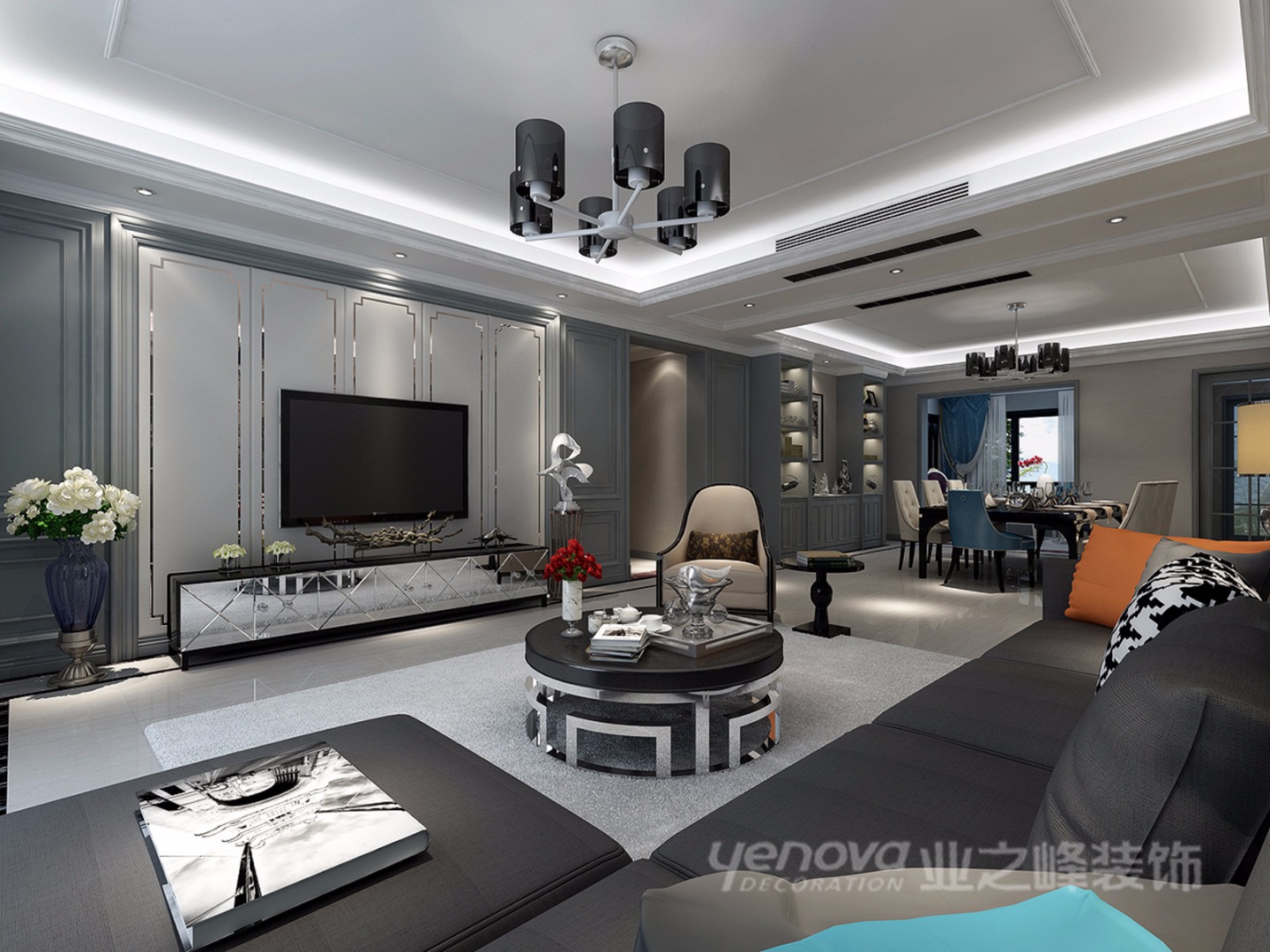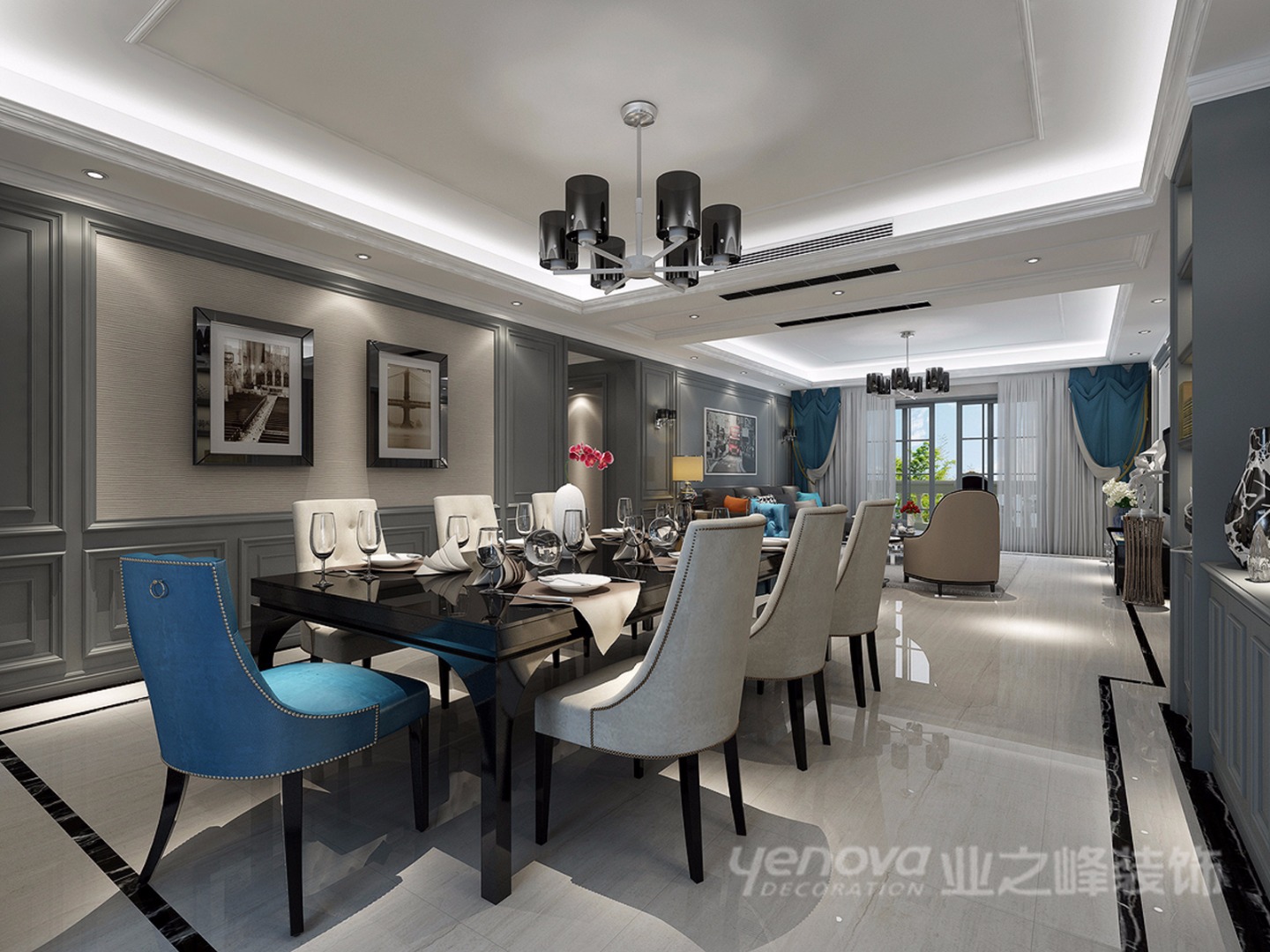 每一个家都有不同的生活态度和理念,我们营造出不同的气氛,更深的渗透到业主深层次的需要。本设计采用的是欧式与现代相结合的方式,现代的家具摆设与欧式的线条造型和灰色墙面的基调相结合,凸显出贵气又不浮夸的气质,高贵蓝的在家用品的点缀使整个空间,明亮起来,营造出现代高贵的气氛。