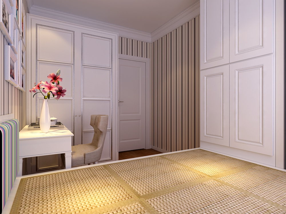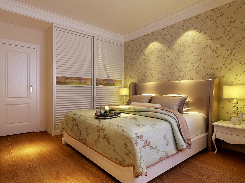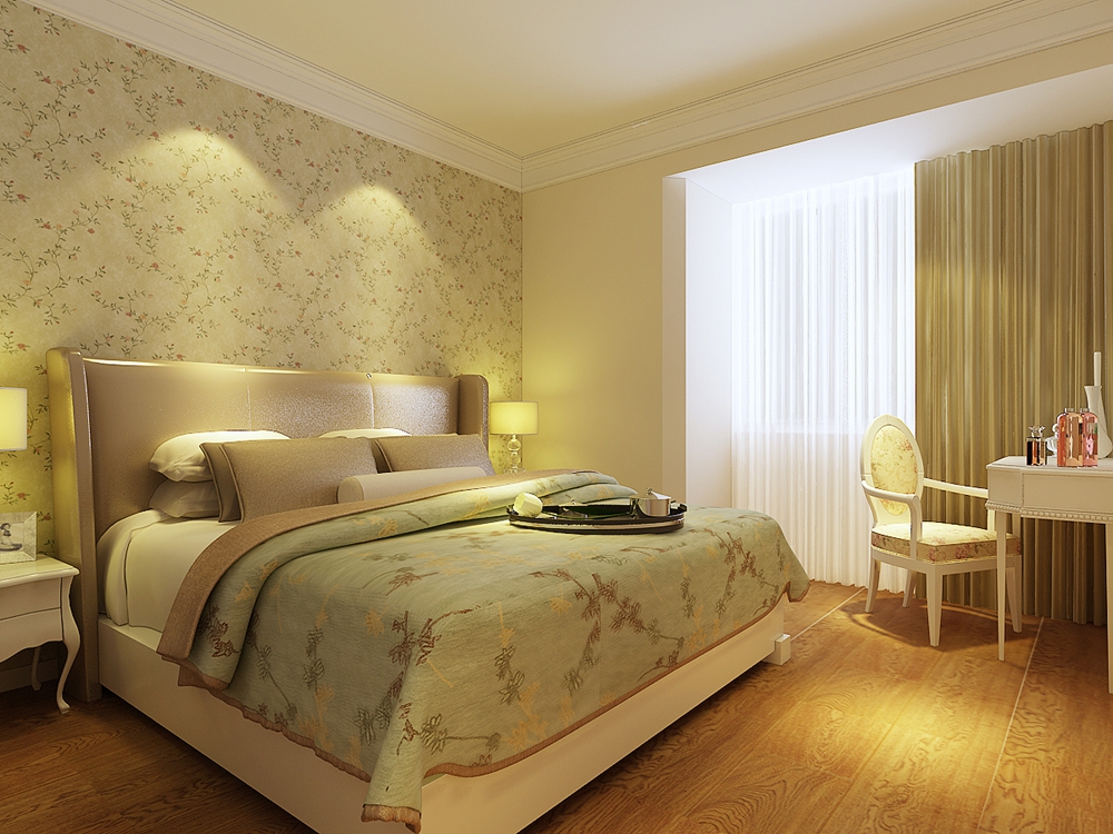 美式家居的卧室布置较为温馨,作为主人的私密空间,主要以功能性和实用舒适为考虑的重点,一般的卧室不设顶灯,多用温馨柔软的成套布艺来装点,同时在软装和用色上非常统一。现代美式多用非炫目灯光,且尽量做到只见光不见灯的效果.