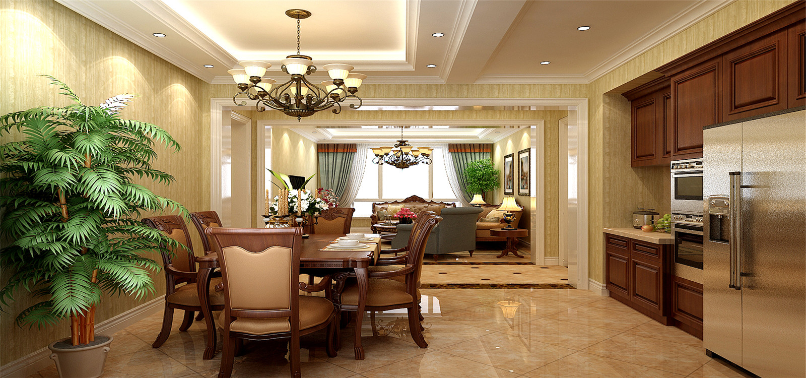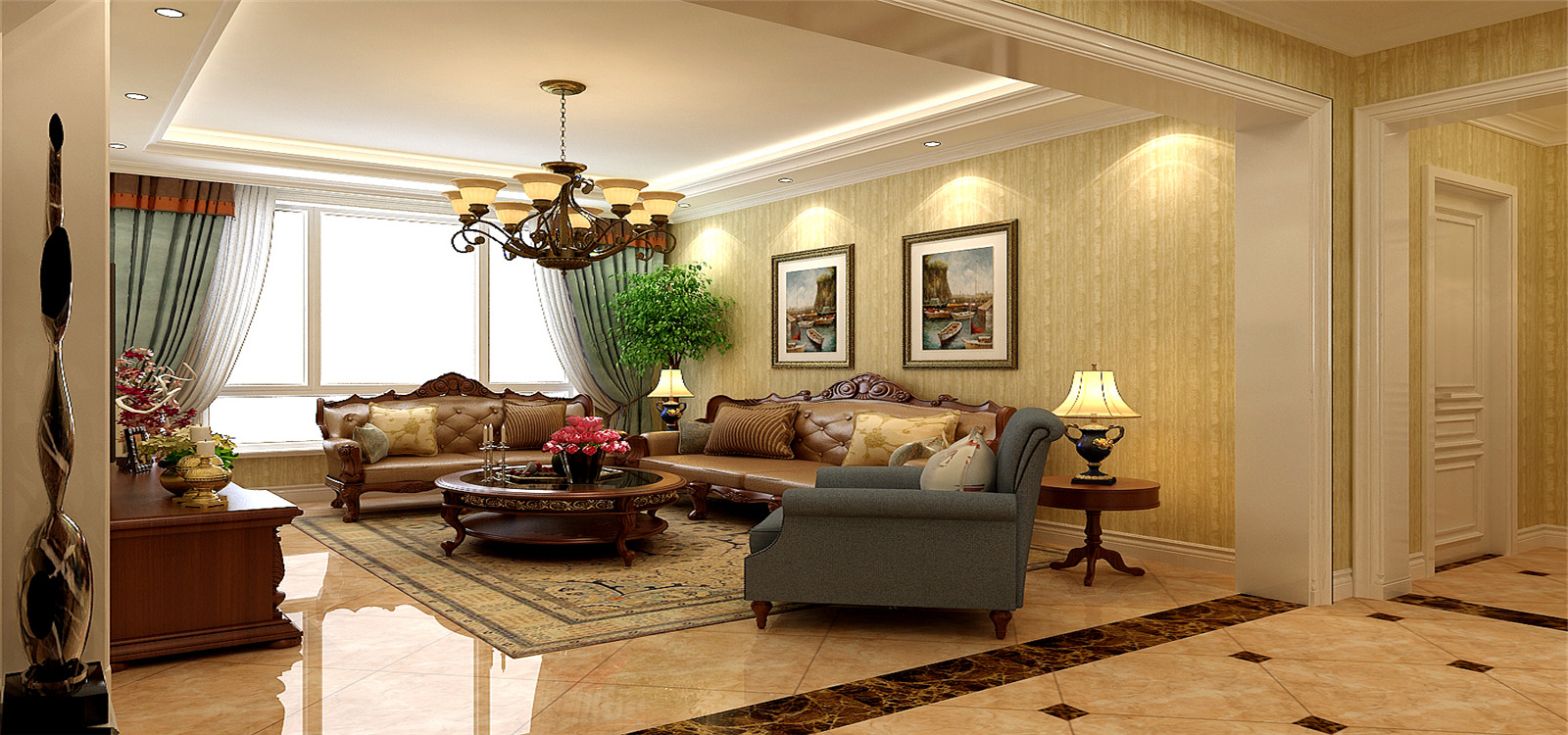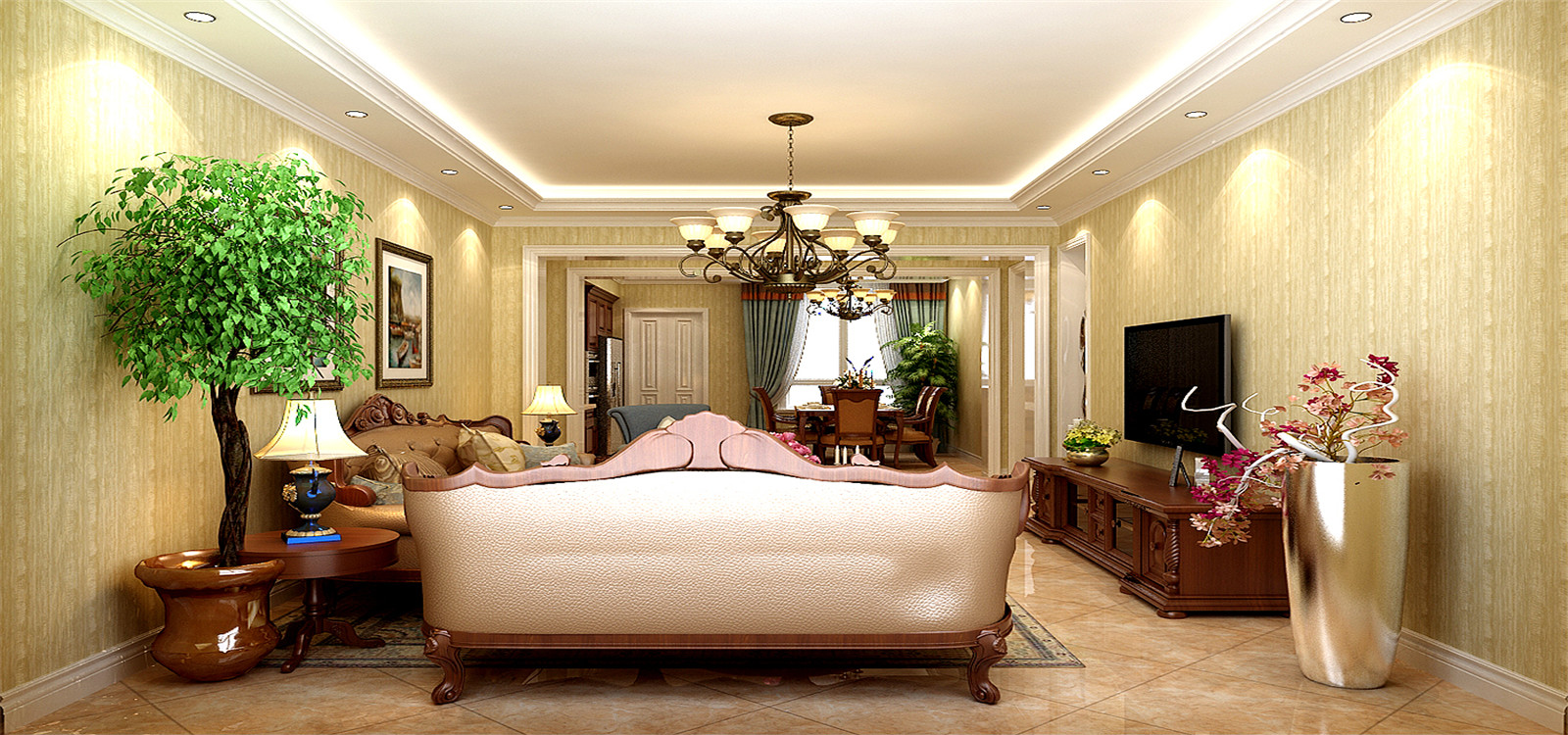 小区:树源国滨馆 面积:129㎡ 户型:三居 风格:简欧风格