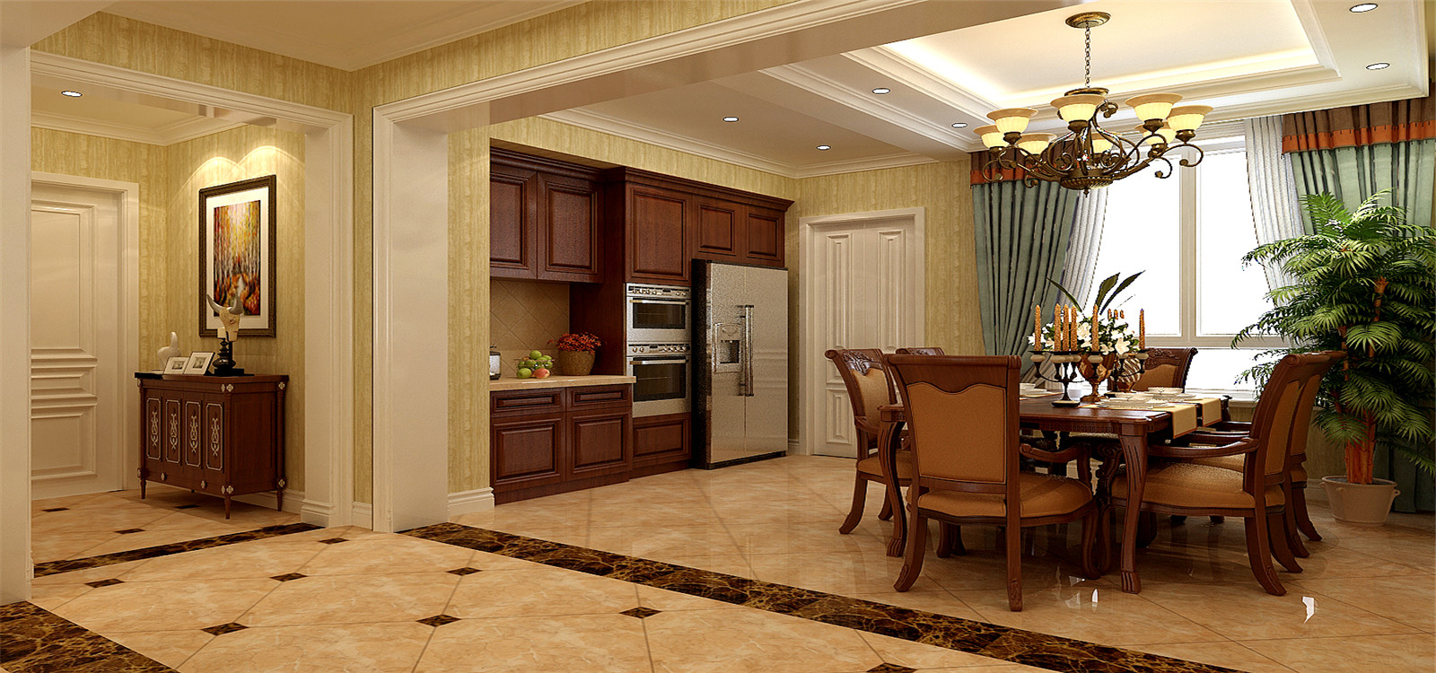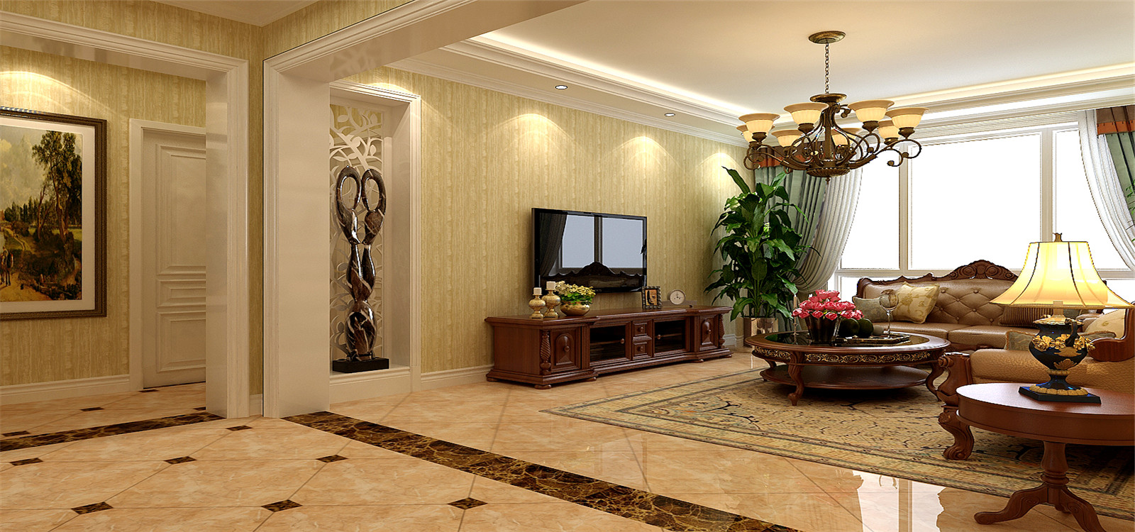 此户型采光通风极佳,在原有户型上做了调整,使整个户型既大气,空间又活跃。基于本身建筑特点,本方案配合风格上做了功能分布上的调整,采用深色家具浅色木作,丢弃了传统欧式的厚重感,并且在风格手法上有所突破,给客户一个不同的全新体验。