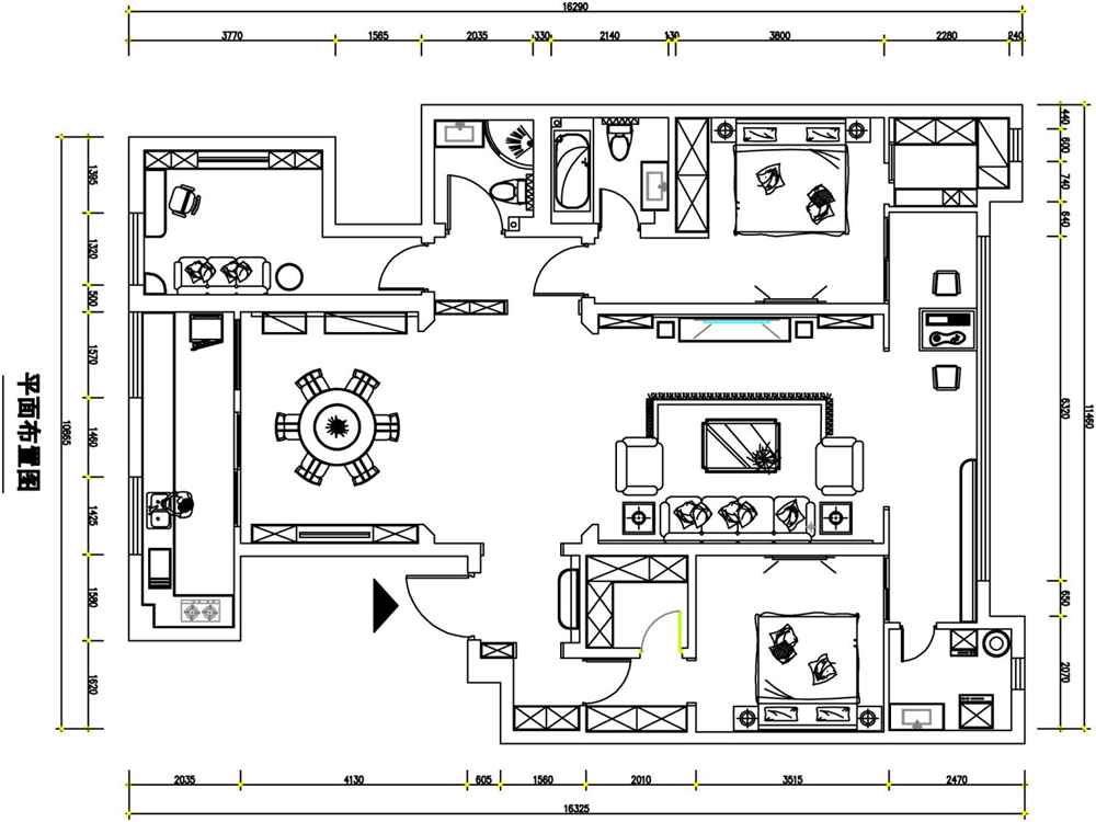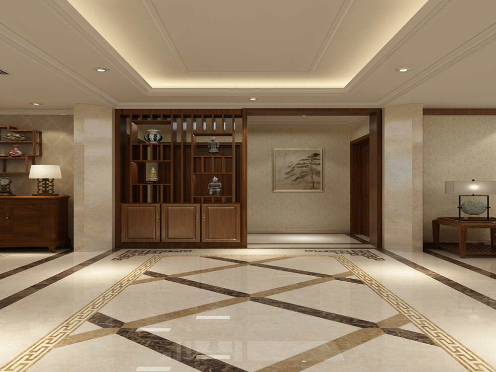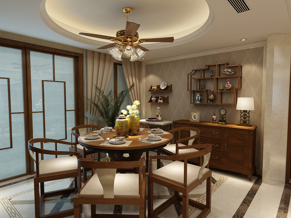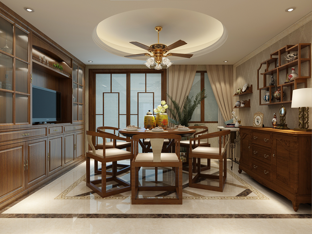 中国传统的室内设计融合了庄重与优雅双重气质。中式风格更多地利用了后现代手法,把传统的结构形式通过重新设计组合以另一种民族特色的标志符号出现。例如,厅里摆一套明清式的红木家具,墙上挂一幅中国山水画户型图