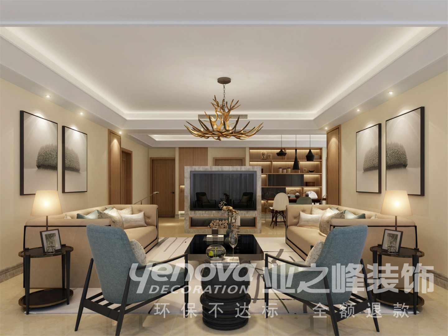 在功能布局上,尽量满足业主生活的需求,同时设计师通过对本案居住空间内的服务人群定位分析,设计出了满足各个年龄阶层、性别人群的功能布局。客厅是交流娱乐中心,主次分明,相对独立,将书房与客厅设置在同一空间范围内,以虚拟流动式的形态特征来体现客厅的功能性。卧室的布局设计在人性心理上也更加体现了其私密性与安全性。