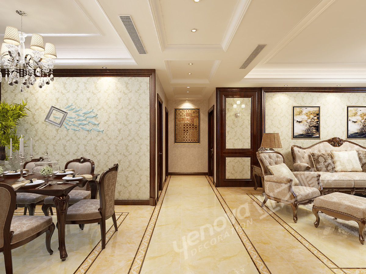 本案位于漫月山,地理位置非常优越;室内采光及通风良好。业主是中年年轻夫妇;因此本案在功能方面考虑的尤为细致。在简欧风格中加入古典元素,古典风格中加入现代的表同手法, 这也在越来越多的家居装饰中应用,使得我们的居室的即有现代感,又有了一丝文化底蕴. 简欧风格继承了传统欧式风格的装饰特点,吸取了其风格的“形神”特征,在设计上追求空间变化的连续性和形体变化的层次感,室内多采用带有图案的壁纸、地毯、窗帘、床罩、帐幔及古典装饰画,体现华丽的风格。 如果说古典欧式风格线条复杂、色彩低沉,而简欧风格则在古典欧式风格的基础上,以简约的线条代替复杂的花纹,采用更为明快清新的颜色,既保留了古典欧式的典雅与豪华,又更适应现代生活的休闲与舒适。
