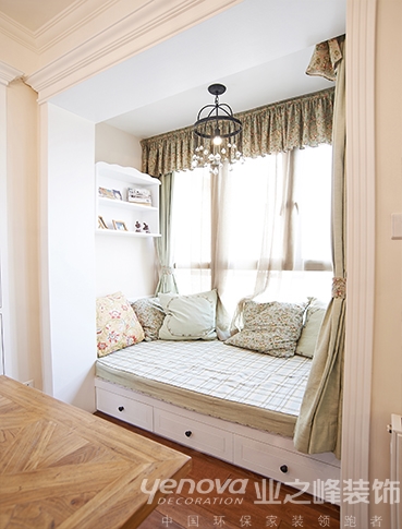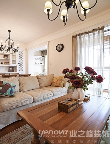 客厅空间:浅色系的沙发、木质家具搭配一株绿色的植物,传递着简洁、舒适的气息,在淡黄色光线的映衬下,呈现出雅致浪漫的韵味。明亮的光线从宽大的窗户照进,让客厅空间显得宽敞大气。