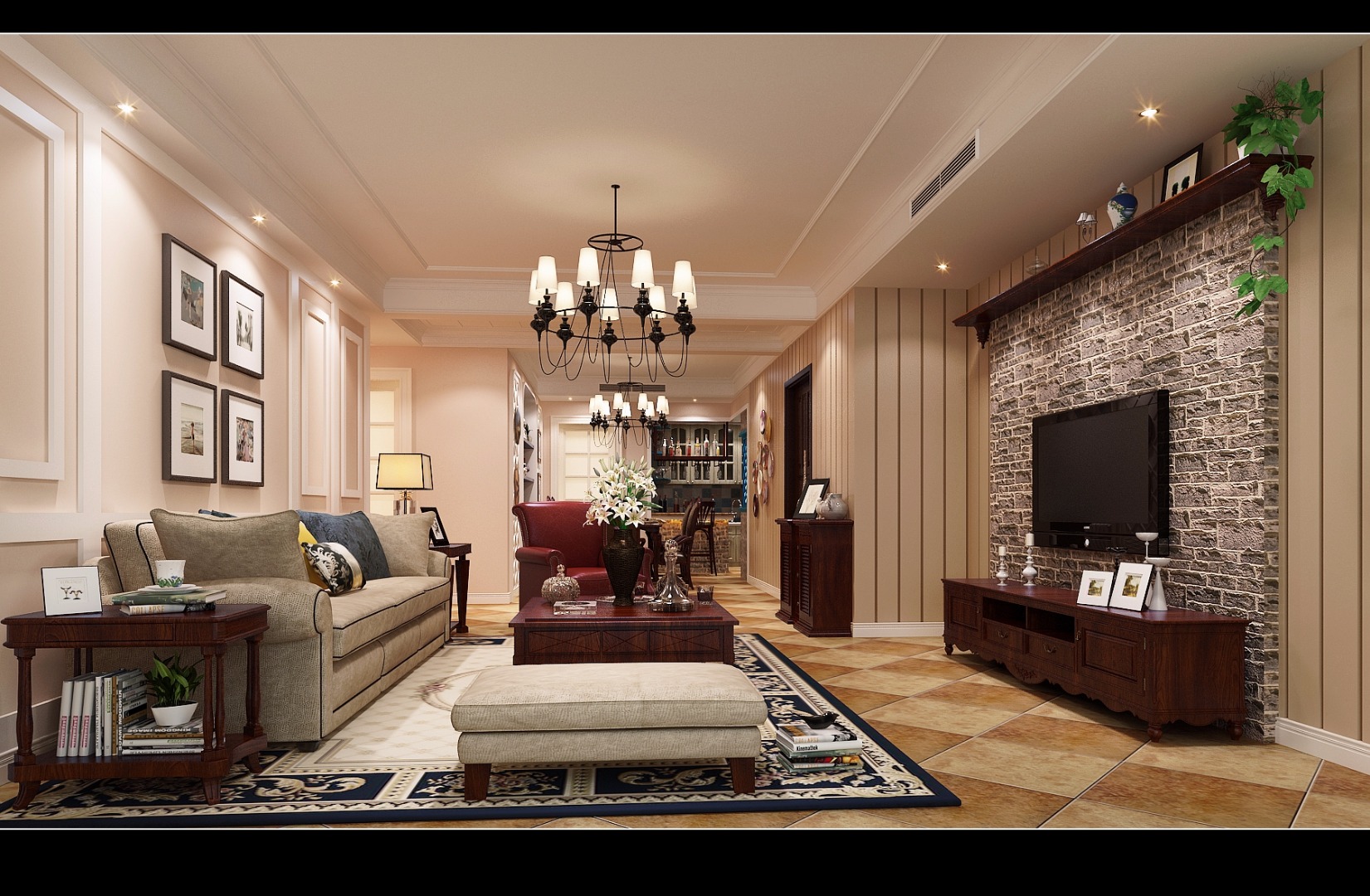 118㎡三居美式风格泰林黄河馨苑
