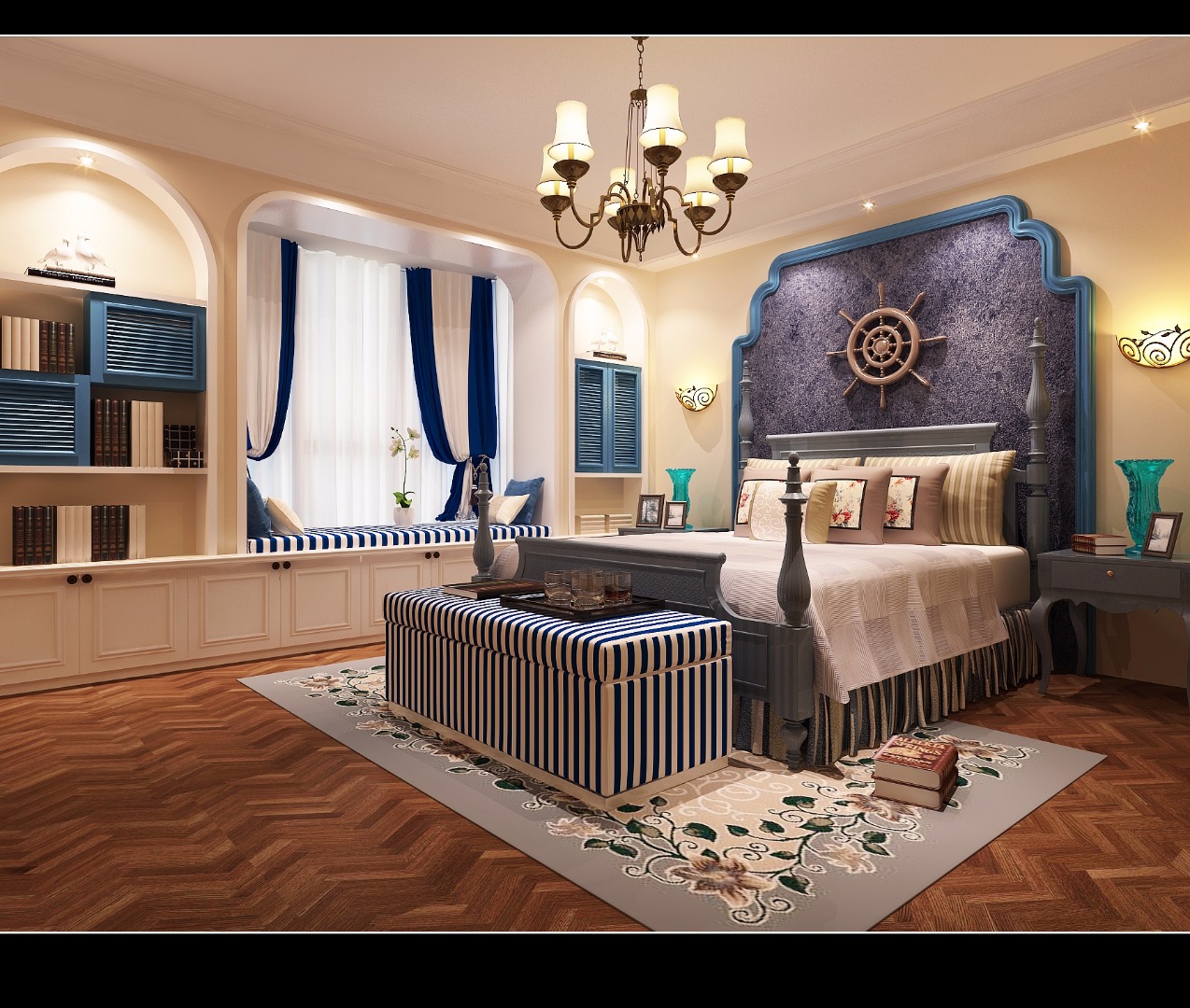 143㎡三居美式风格柳岸晓风