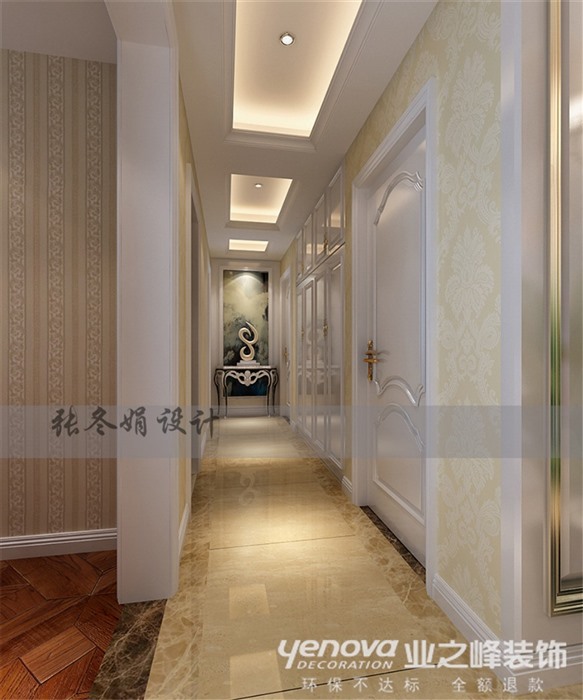 设计说明:该户型为150平方,业主为80后夫妻,经沟通后将方案定为简欧风格,考虑到工作问题,男主需要独立书房,所以将书房设立在采光较好的北阳台隔壁,因为过道狭长,所以将儿童房墙面改为双面衣柜空间,增加整体储物空间。全房以白色,暖黄为主,营造干净,温馨氛围。
