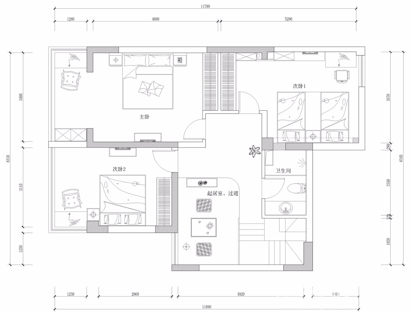 本案业主喜欢地中海的蓝,从原始户型分析和风格的结合发现还挺合适的。户型结构上有一定的弊端,但是从风格设计手法上都避讳掉了。面对这样的户型,主卫生间面盆确非常的小气,于是在算好尺寸的前提下,把主卫的面盆悬空借用了楼梯的空间。