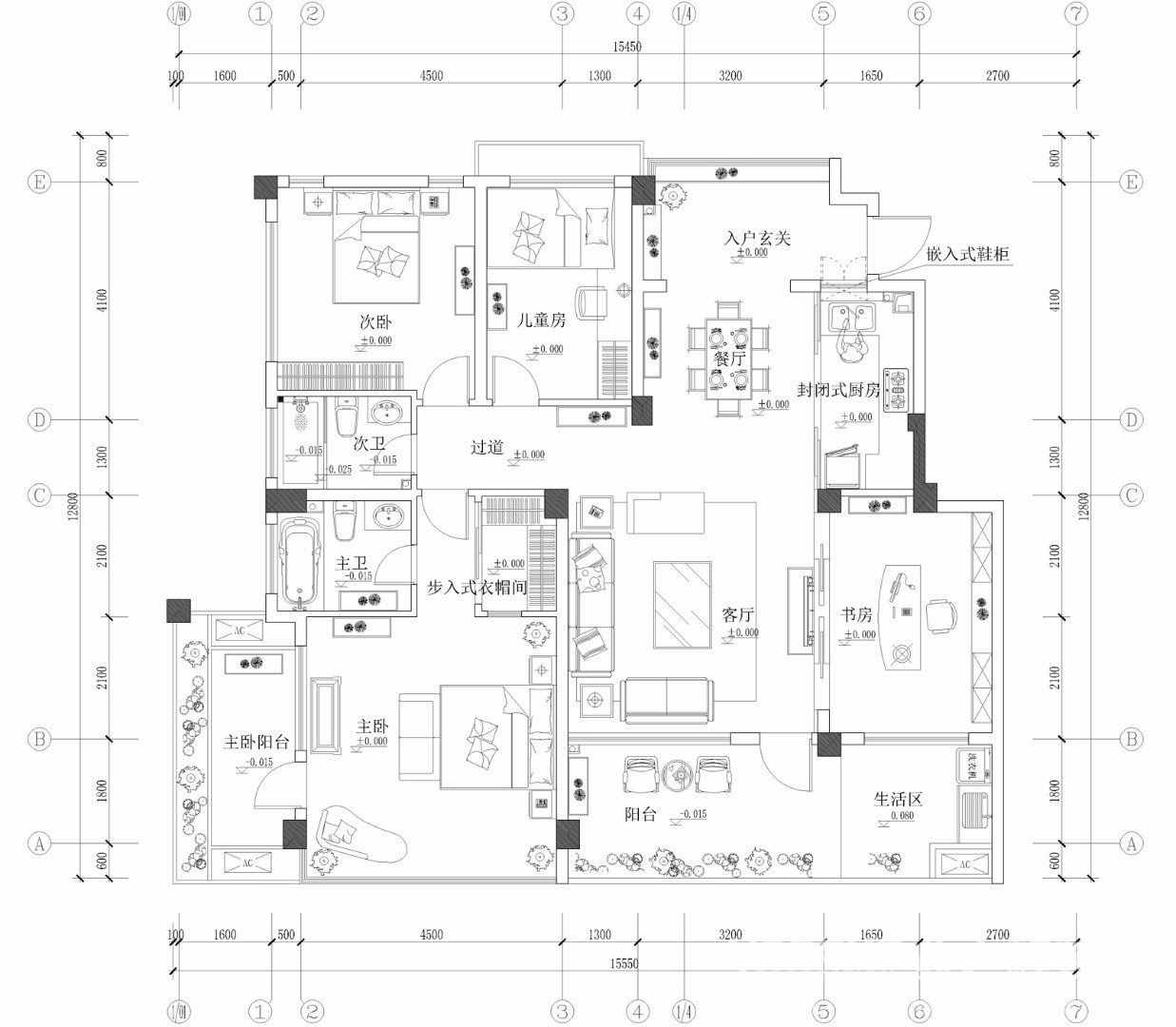 小区:香颂岛 面积:132㎡ 户型:三居 风格:港式风格
