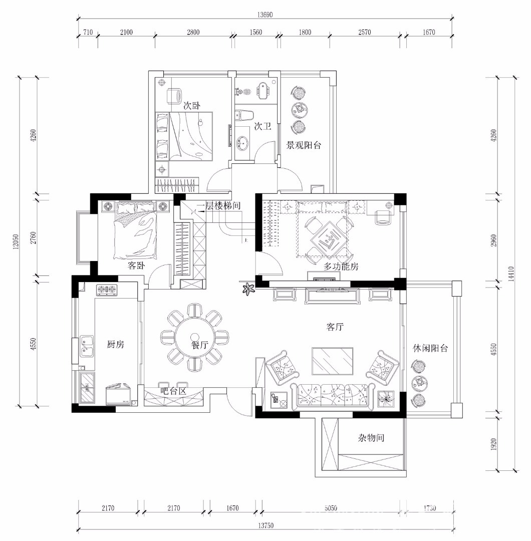 本案为一外地客户,夫妇两喜欢古点欧式的大体感觉,确又不想做的那么复杂。常年就只有两人居住,过年的时候儿子会回来居住,亲戚也会回来。由于是二级城市,许多生活习惯就要求设计师要考虑的。比如过年过节的时候朋友会送点土鸡、鱼啊什么的,朋友来了会在家打打麻将,会客吃饭的时候会需要很大的桌子等等。