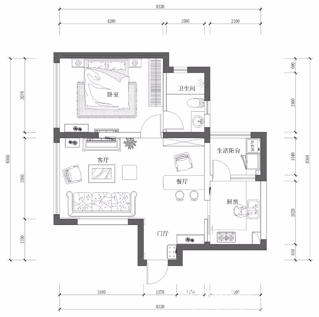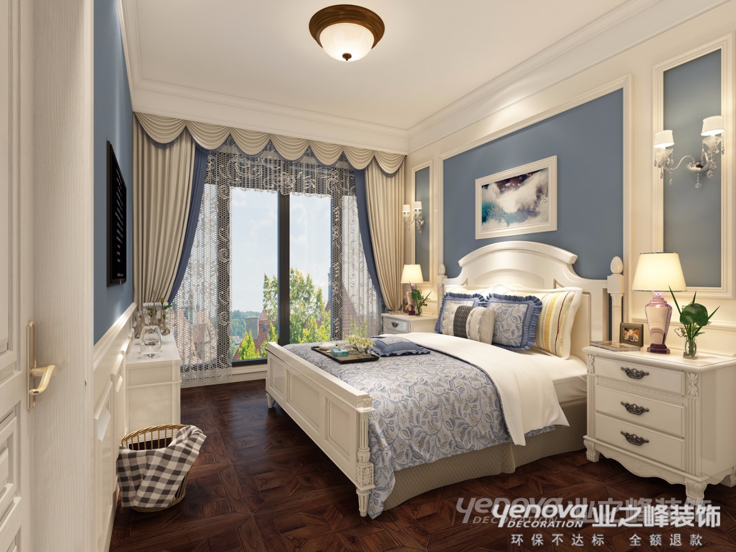 此方案的亮点主要在于主卧的改动,把原来的墙体拆除,在有限的空间中增加了主卧的使用面积,视觉上也更为通透明亮。原来厨房的平开门会占据一部分空间,巧妙的利用墙体厚度把推拉门 隐藏墙体后面,不仅外观上更为美观、舒适,在实用上也赋予了空间更多的可能性。在电视背景墙与沙发背景墙上大面积采用了护墙板来增加空间的层次感使得原来的空间变得更加丰富,营造出一种温馨的氛围。用石膏板加线条吊顶将原有的中央空调做了修饰,显得整个空间既舒适又美观。客厅在色彩方面根据业主喜欢的美式小清新风格运用了大量的暖色调,烘托出温馨、浪漫的居家环境。而在卧室的色彩方面则运用了冷色调,白色和蓝色的搭配使得空间简单明朗、开阔不会有压抑之感。蓝色给人以潮湿而透明的感觉,有如大海,而白色的屋顶有如广阔无垠的天空,房间整体给人以海天连成一片的感觉。使人置身其中仿佛在海边一般,悠远而清新,能够让人在一天忙碌后远离都市的喧嚣,感受到家就是我们避风的港湾,在这里我们可以尽情放松自己,身心都能得到极大的享受与满足。