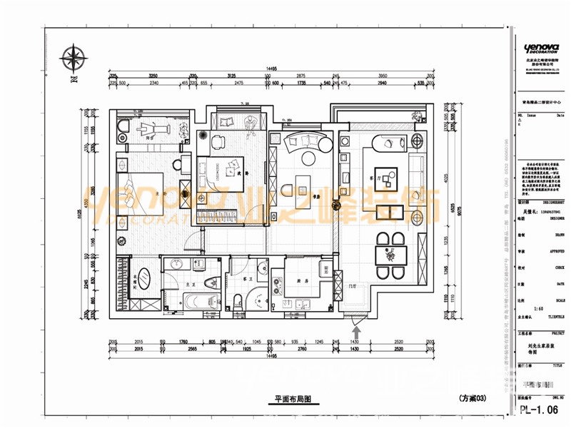 小区:麦岛金岸 面积:140㎡ 户型:三居 风格:简欧风格