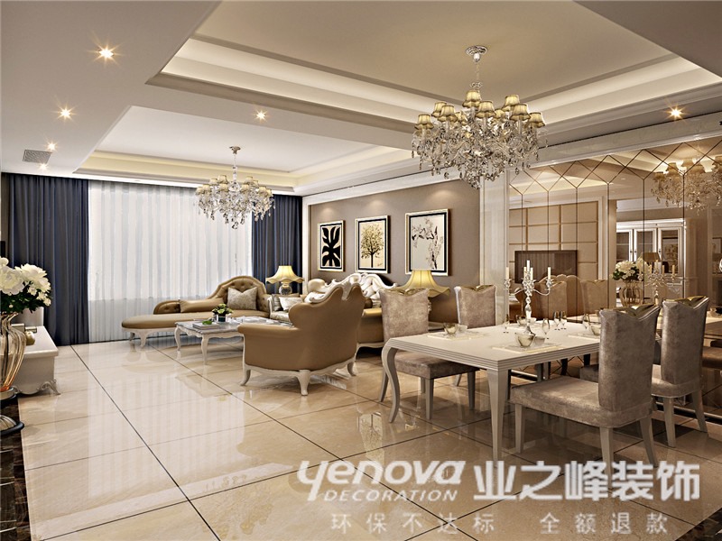 餐厅区域 –利用大理石花线圈边,搭配镜子,既起到了装饰作用,又起到了使整个空间显大的感觉。