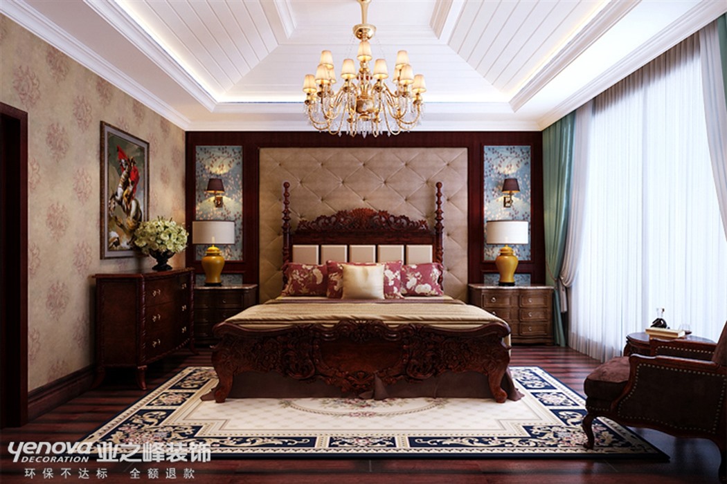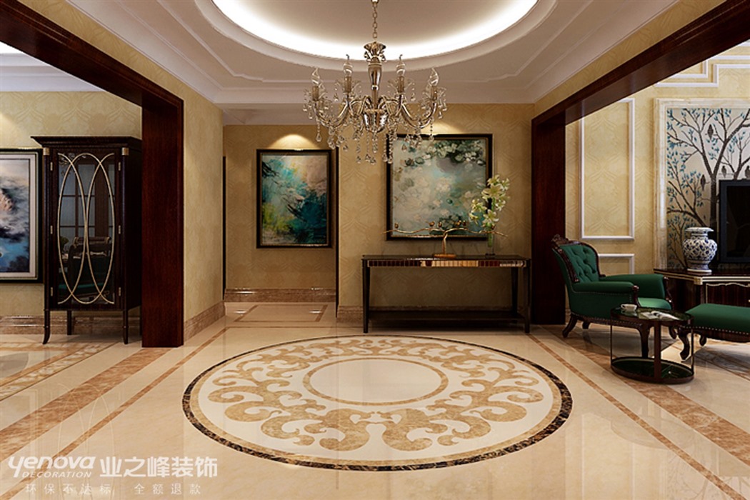 本方案整体建筑设计风格为欧式风格,业主需求一种有品质的人文生活环境。设计师了解了业主的需求后,围绕着舒适、共享、沉稳等元素的定位,设计从门厅着手,以次主线整合与客厅、主卧、各个空间的功能关系。在家具的选择上业主偏好沉稳的家具,电视背景墙上铺贴的石膏线条,合理布局、划分区域。选用的壁纸以暖色为基调,与木质家具、地砖很好的融合在一起,是整个空间显得温馨、舒适。