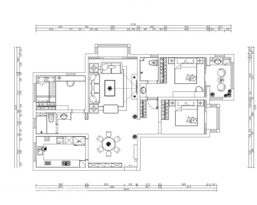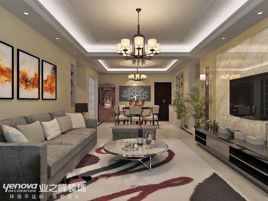 小区:翰林观天下 面积:137㎡ 户型:三居 风格:简欧风格
