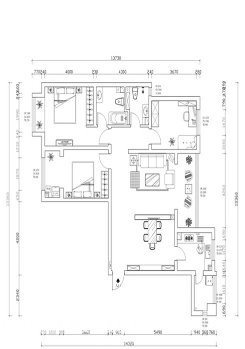 110㎡三居现代简约风格花香漫城