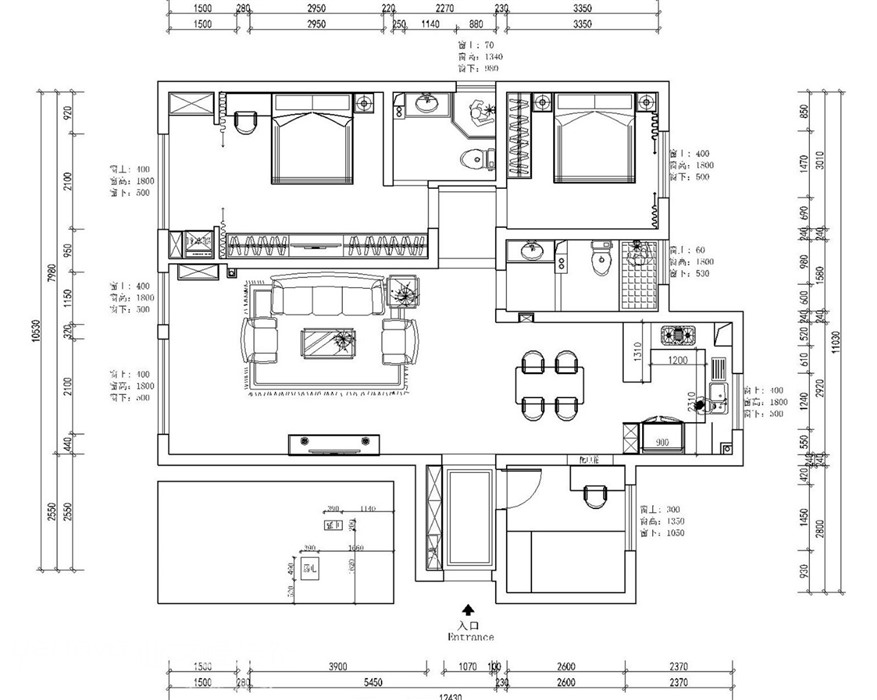 135㎡三居简欧风格启锐园