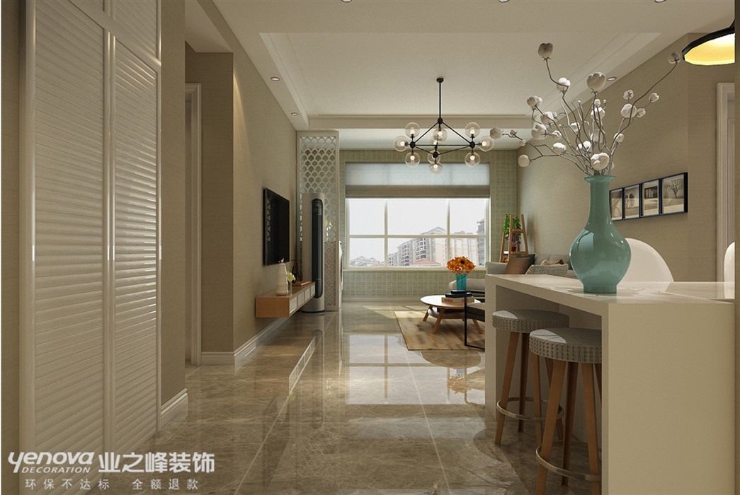 整体效果以女业主喜欢的北欧为主。设计师在户型结构上进行了改造,扩大了客厅空间,利用隔断将阳台洗衣区分隔。入户吧台将门厅与餐厅区巧妙的分离,实用功能与美观效果并存。餐厅采用卡座形式,使空间更加的合理的利用。整体效果简洁不失时尚。