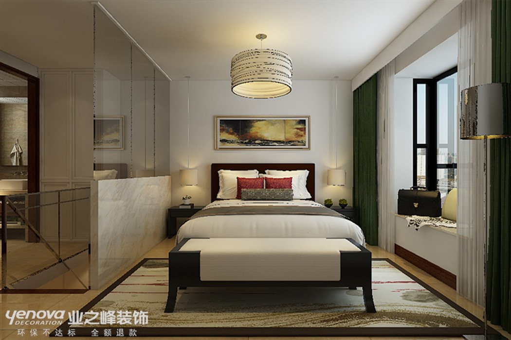 本方案的设计风格为简约中式风格,整体空间以暖色调为主,搭配简约中式木色软装家具,营造舒适明亮的简约新中式。在满足中式风格的基础上将空间和情感简洁化,整体氛围简洁明朗。卧室以满足空间的功能需求为设计出发点。