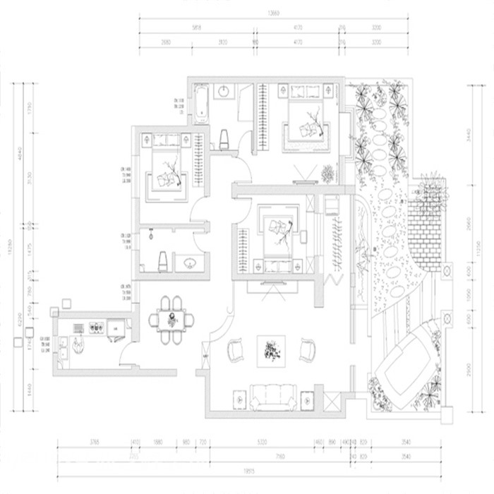 120㎡三居新中式风格欧景园