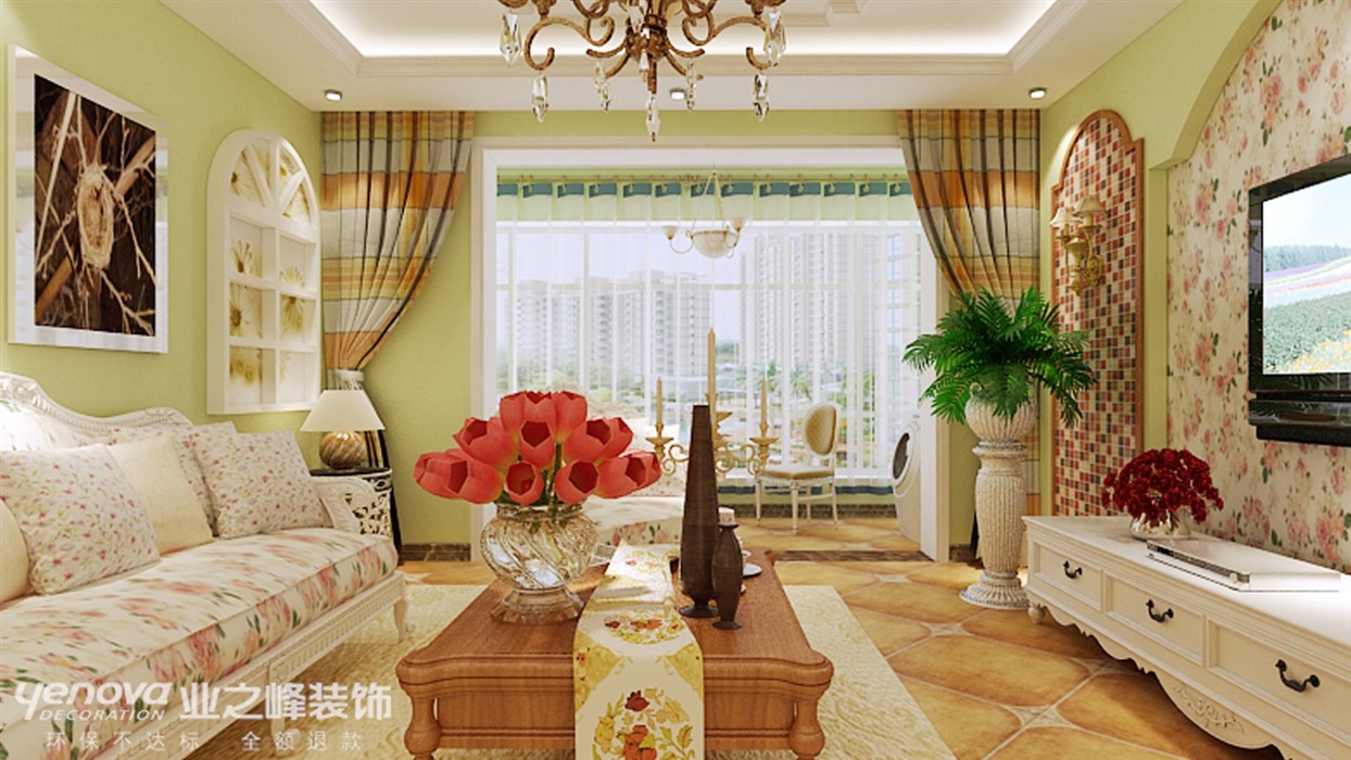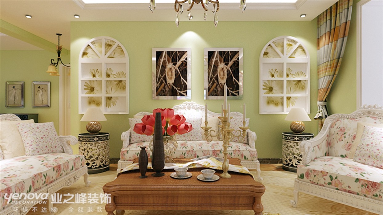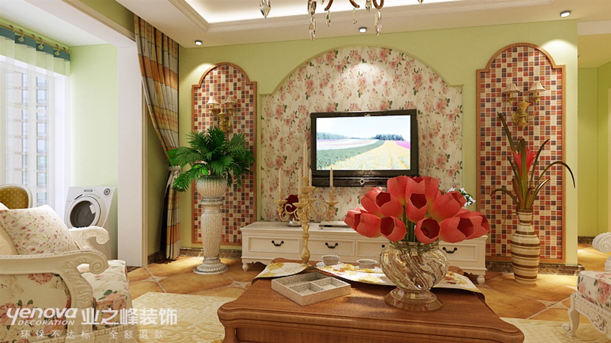整个画风虽然简洁但是不失精致,嫩芽绿的运用让空间更加柔,充满着勃勃生机,恰到好处橙色地板的运用与墙面色相映成趣,沙发作为主体运用雅致的花色,让空间灵动起来。马赛克的应用,更加精致和细腻。