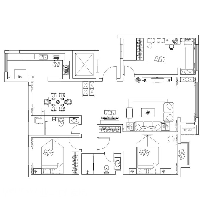 小区:瀚塘 面积:160㎡ 户型:三居 风格:美式风格