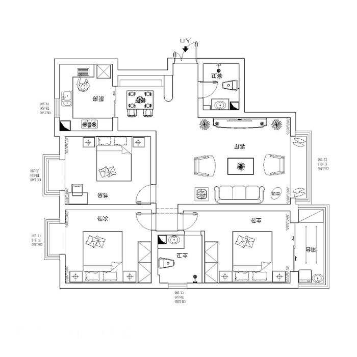 小区:明珠花苑 面积:128㎡ 户型:三居 风格:北欧风格