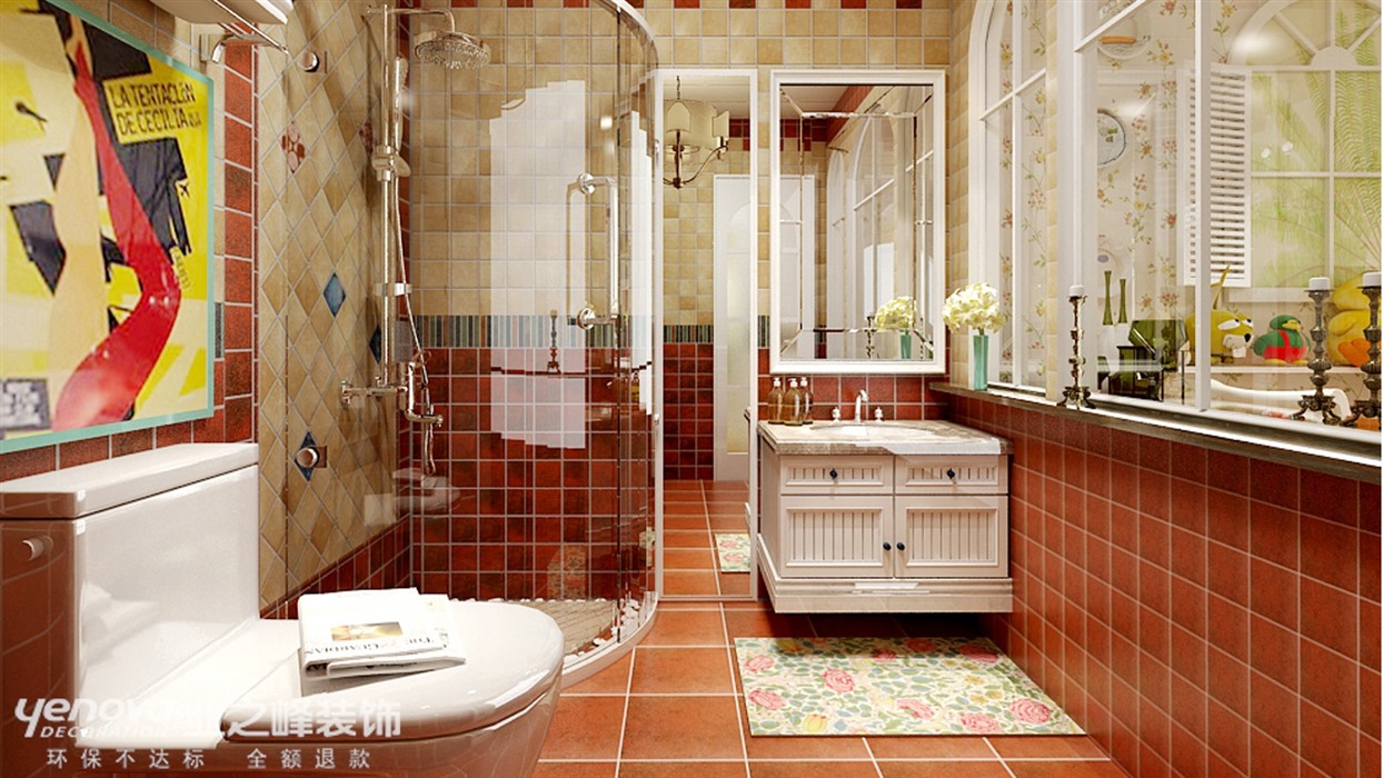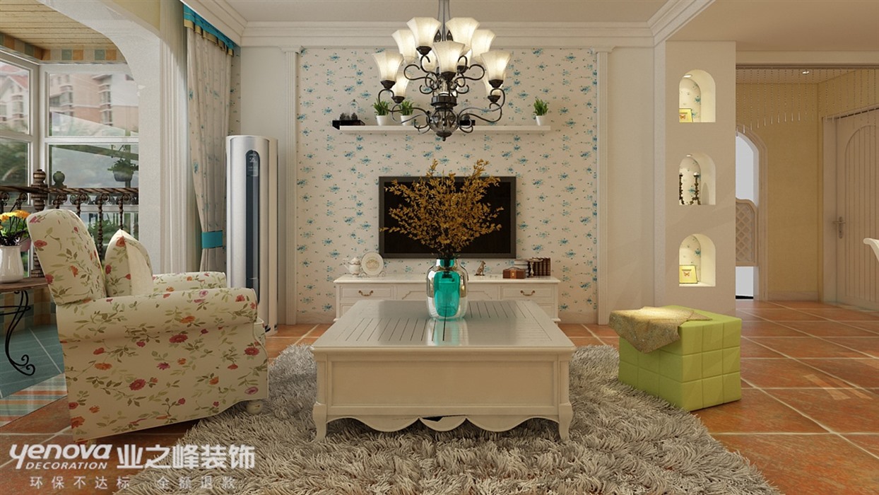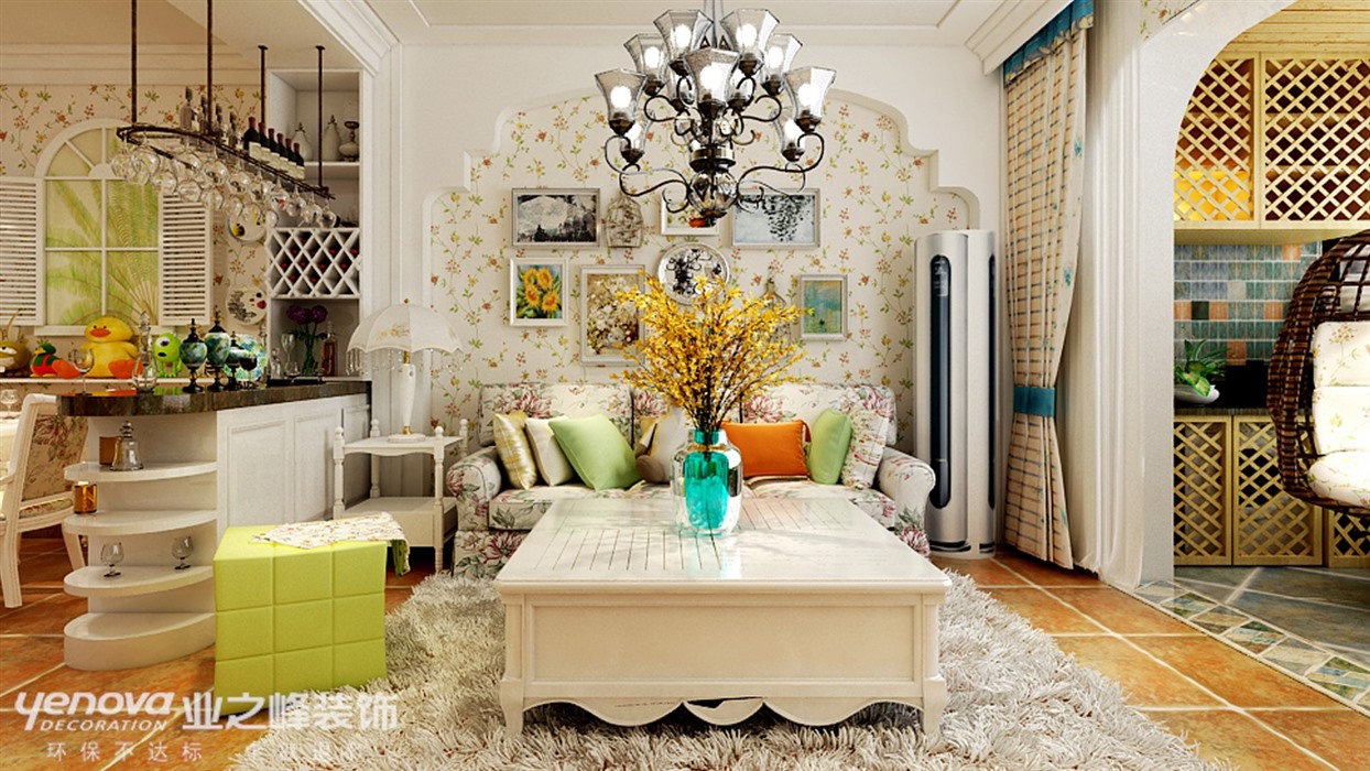 整个画风虽然简洁但是不失精致,碎花的运用让空间更加柔,充满着勃勃生机,恰到好处橙色地板的运用与墙面色相映成趣,沙发作为主体运用雅致的花色,让空间灵动起来。马赛克的应用,更加精致和细腻。