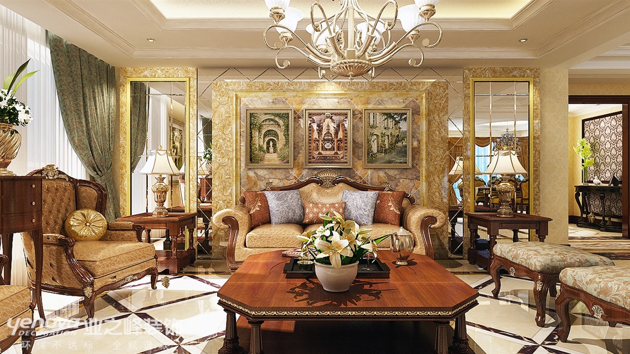 设计师通过运用统一的暖色调提升了整个空间黄色系的纯度,鎏金和镜面更是将整个空间衬托的富丽堂皇,生活的品质在此处表现的不羁,这是一种精致的追求,崇尚奢华而不失韵味。