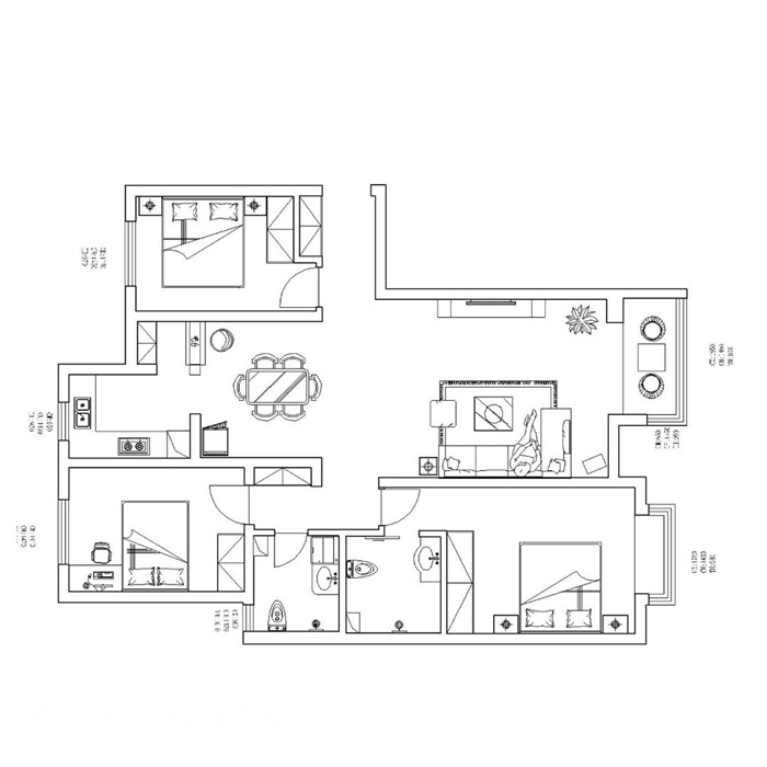 小区:众美凤凰城 面积:138㎡ 户型:三居 风格:简欧风格