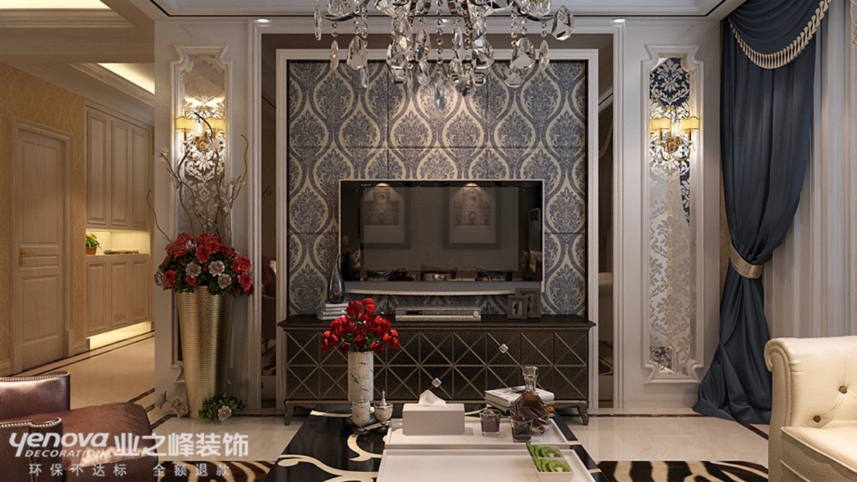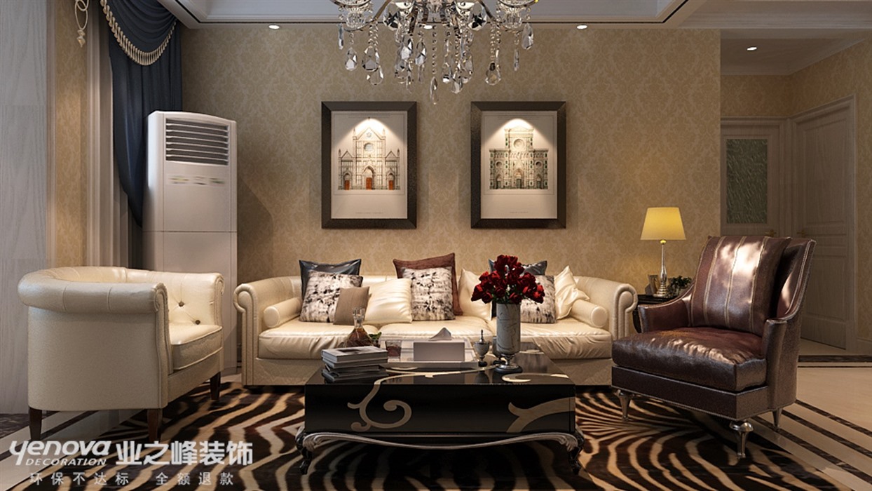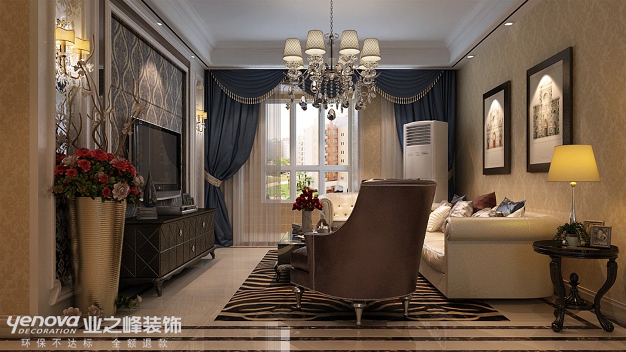 此方案的设计风格定义为欧式风格,本方案运用富丽堂皇的装饰少了浓丽的色彩呈现出一片清新典雅大气并存的轻松空间,富有机理的电视背景墙明亮素实的窗帘和古典色彩的地毯交相辉映,加上华丽素雅的沙发,构成了一种典型的欧洲世界。
