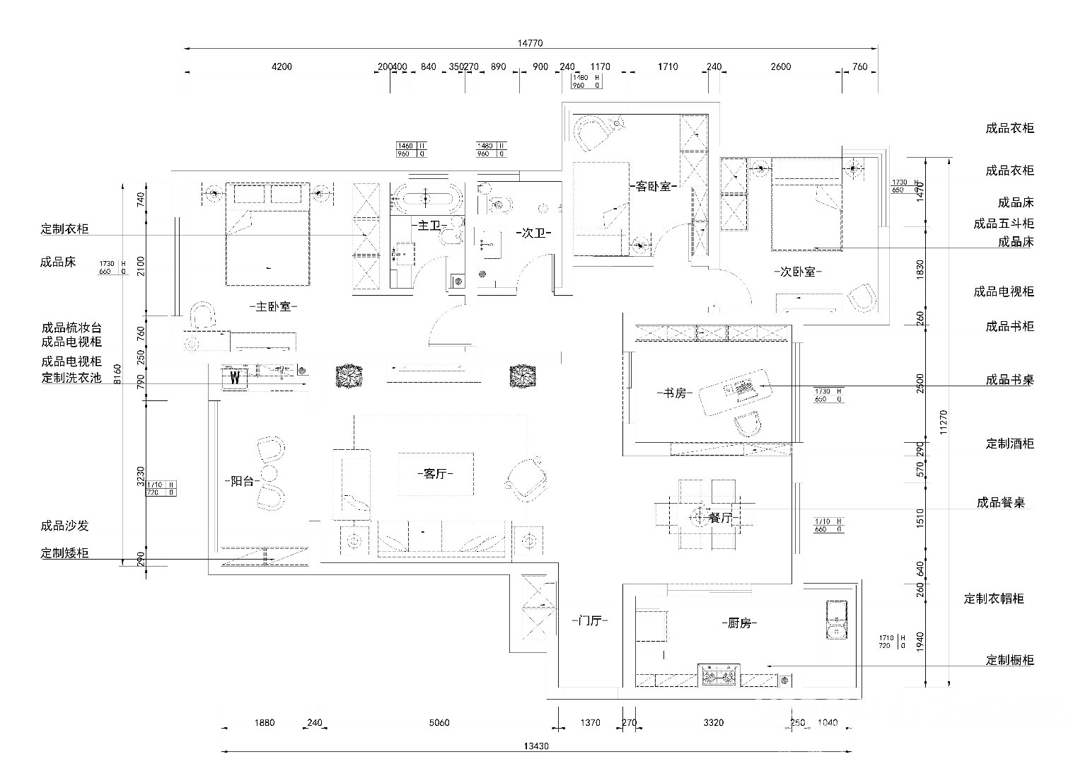 小区:金辉融侨城 面积:150㎡ 户型:四居 风格:简欧风格
