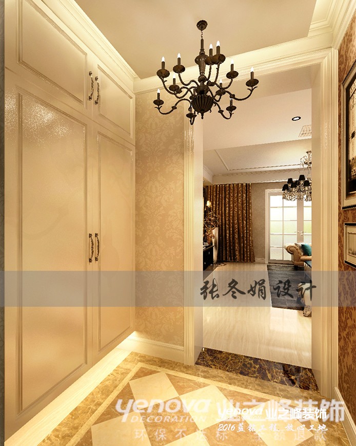 业主为年轻小夫妻,经商讨女业主风格倾向与欧式,男业主希望留有独立书房,所以本方案,将书房设置于主卧隔壁,使书房空间和卧室空间有连续性和私密性。本方案以咖色,纯白为主,使空间有奢华魅力带来惬意和浪漫。通过完美的典线,精益求精的细节处理,带给家人不尽的舒服触感,变形的直线与曲线相互作用以及猫脚家具与装饰工艺手段的运用,构成室内华美厚重的气氛。用大理石、华丽多彩的织物、精美的地毯、多姿曲线的家具,让室内显示出豪华、富丽的特点,充满强烈的动感效果。