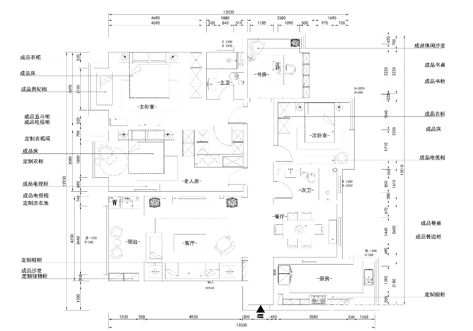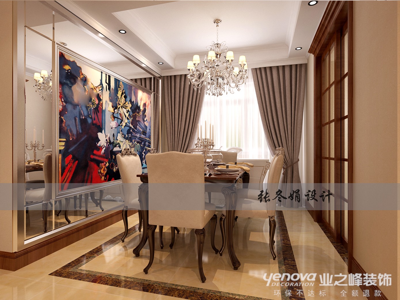 本方案业主为70后夫妻,女业主需要有衣帽间,男业需要独立书房。经商讨,将方案定为简约欧式风格。电视背景墙运用护墙板和有图案的壁纸设置奢华感觉,电视背景墙上壁灯添加欧式流动性,老人房总体狭长,所以将老人房进行拆改,扩大主卧空间增加衣帽间,将书房设置在光线充足的西房间,保证了整体的通透性和私密性。餐厅采用镜面和大型挂画,增加时尚感。沙发背景墙采用线条和软装,达到舒适感觉。方案主要运用暖色,使空间更加温馨,在材质上运用的比较有质感,比如实木线条,猫脚家具。