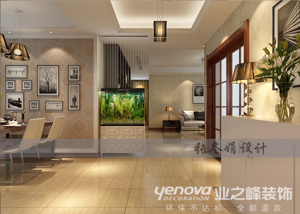 本方案业主为80后年轻夫妻,作为婚房使用,业主倾向于现代简约风格,业主需要有独立休闲室。电视背景墙采用木地板简单造型,既简单又大方,配上顶部照下来的灯光,整个电视背景墙把客厅提升起来。沙发背景墙只做了简单的处理,上面可以放装饰画等,进行局部点缀。餐厅是家居生活的心脏,不仅要美观,更重要的实用性,整体性。餐厅的灯光很重要既不能太强又不能太弱,灯光则以温馨和暖的黄色为基调,顶部做了简单的吊顶。墙面贴了局部壁纸,可以增加一下餐厅的情调。独立休闲室设置在北房间,保证了安静性。使人在空间中保持身体和心灵的休息。