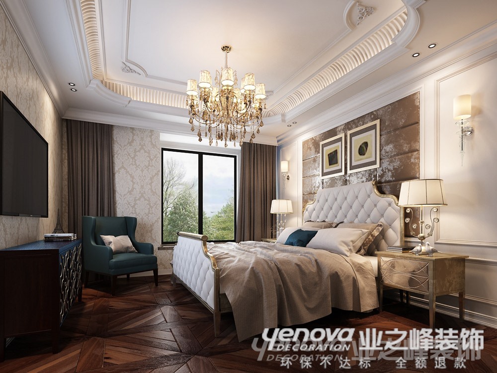 本案是简约欧式风格,欧式风格有它独特的美学特点。简单的欧式线条与家具互相衬托。在组合上注意空间搭配,充分利用每一寸空间,且不显局促、不失大气,尤其多采用开放式自由空间;在选色上,一般选择自然的柔和色彩,且以素色浅色为主,凸显出家具以及装饰的质感,彰显品位;在柜门等组合搭配上避免琐碎,让人处处感受到浪漫主义气息与亲切舒适的居家感觉。