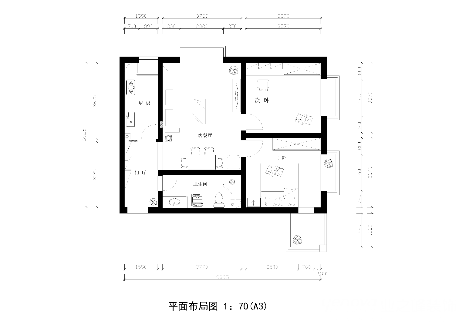 90㎡二居现代简约风格百德尚景