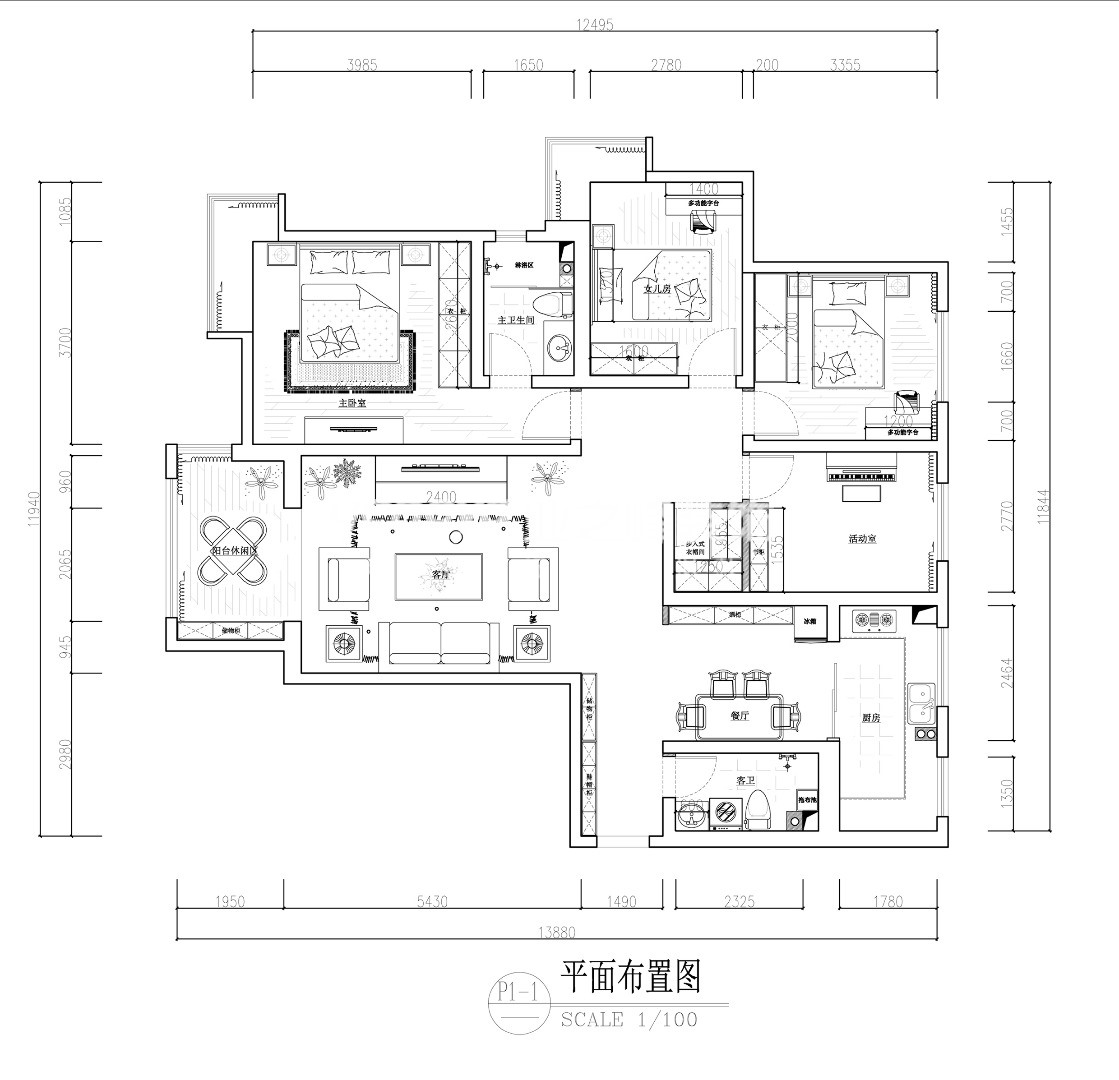 小区:瑞南紫郡 面积:160㎡ 户型:四居 风格:美式风格