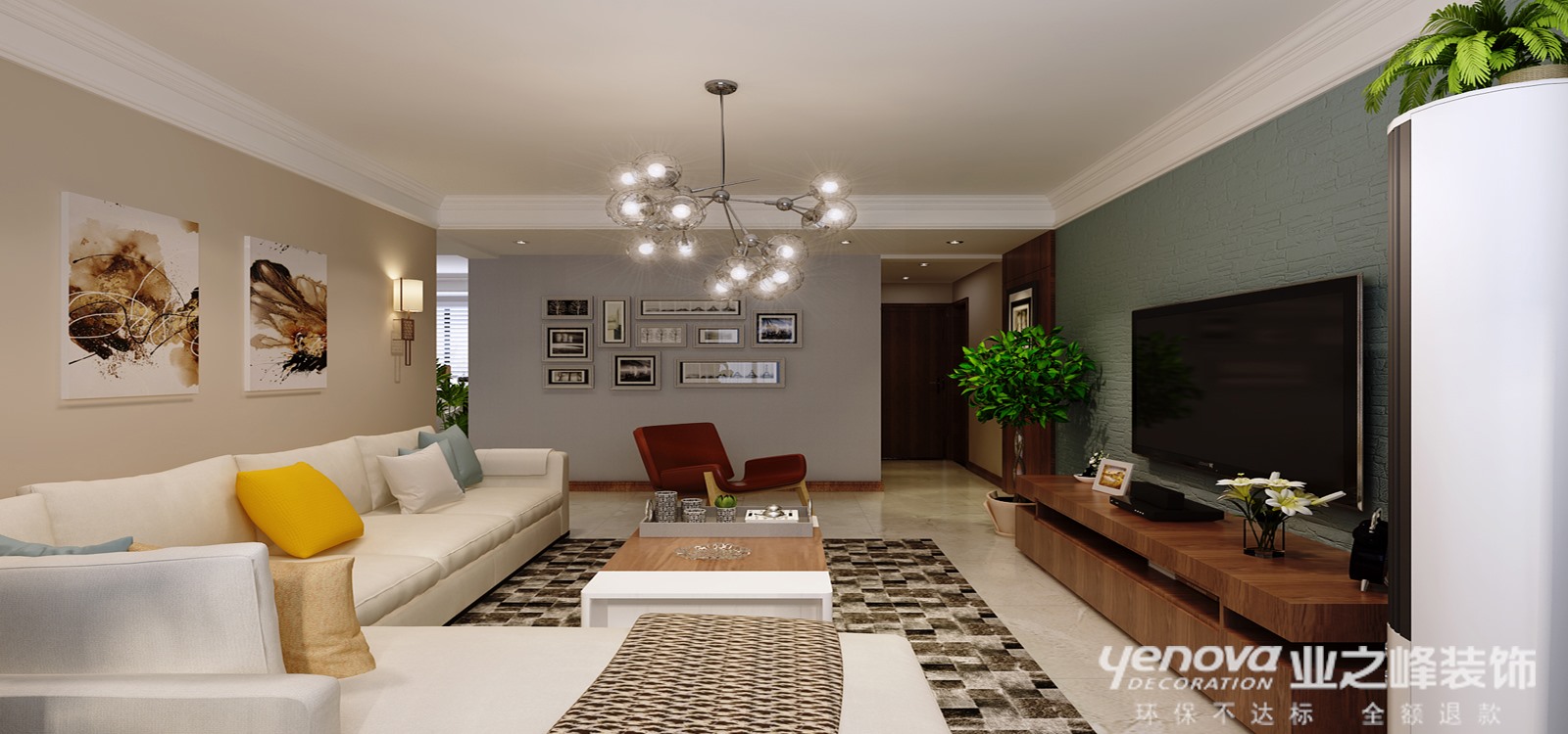 业主一家三口,生活节奏很快,整体颜色搭配时尚简单,素色壁纸搭配木色家具以及铁艺灯饰是本案的亮点,业主非常的喜欢,推荐年轻时尚人群首选。