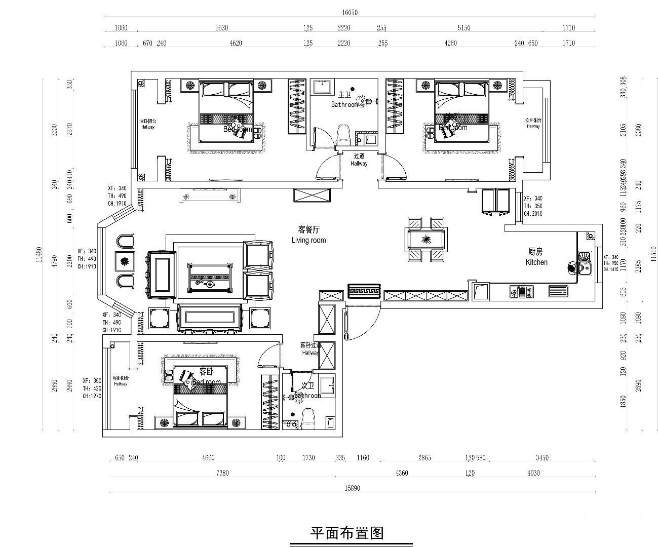 恬静雅居 170户型,此设计方案定位为新中式风格,