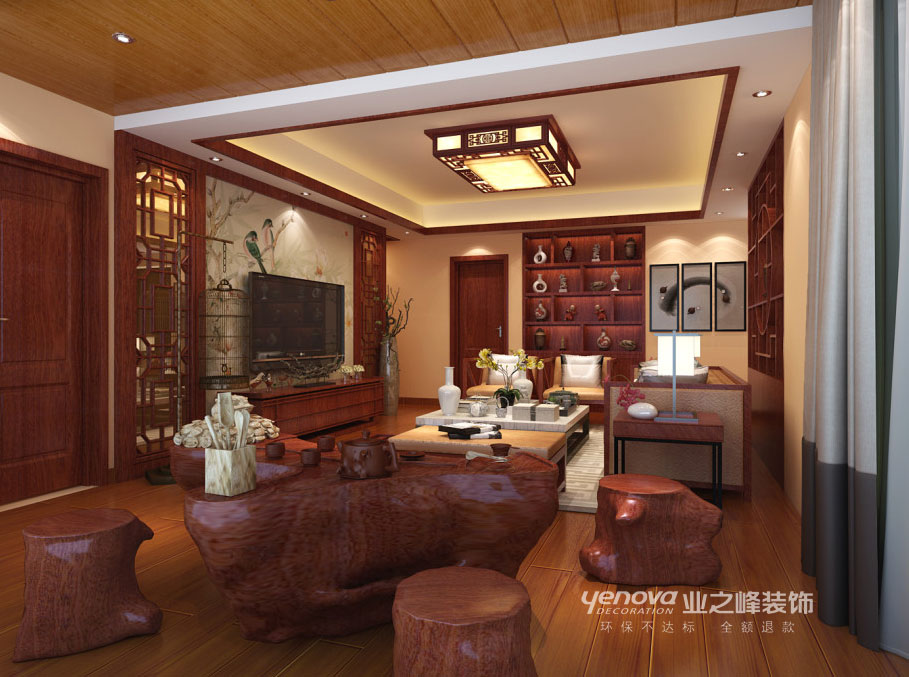小区:溪湖春晓 面积:135㎡ 户型:三居 风格:新中式风格