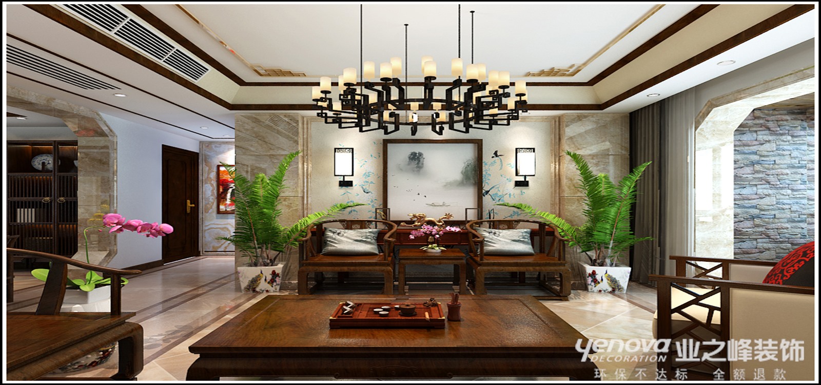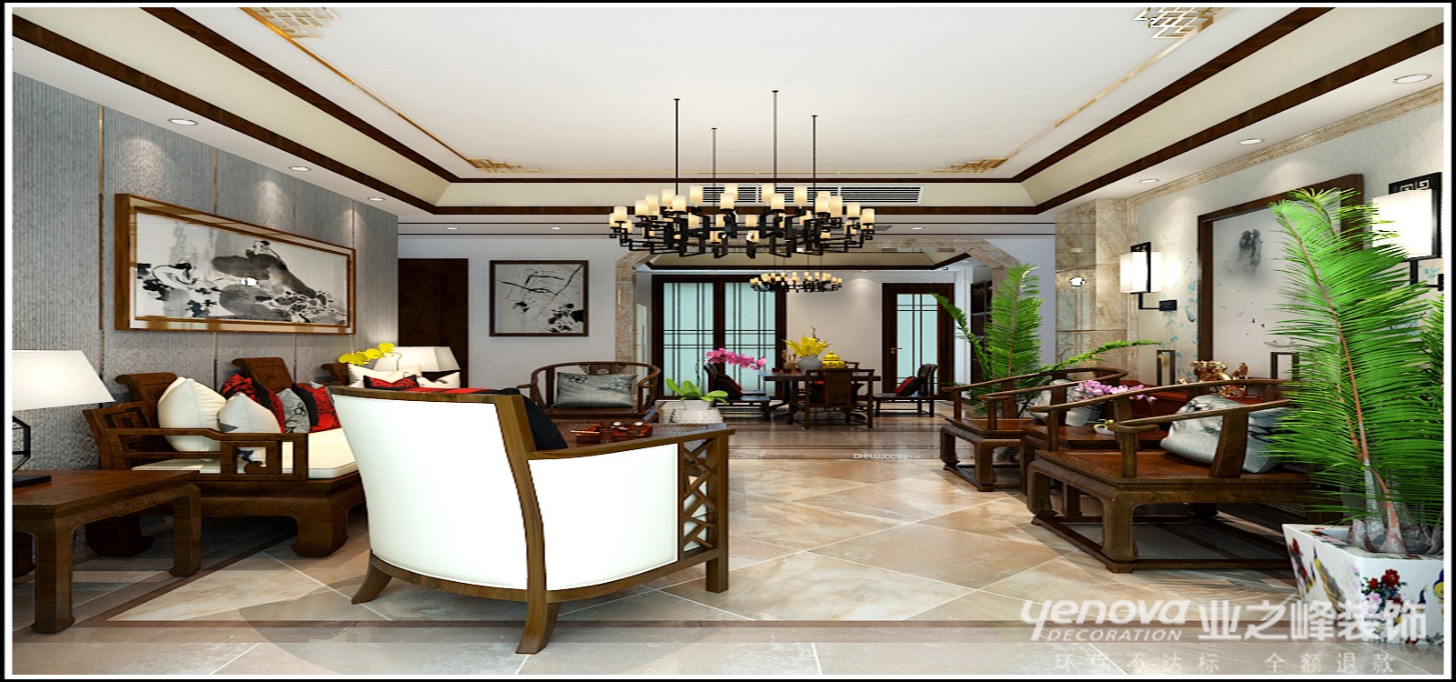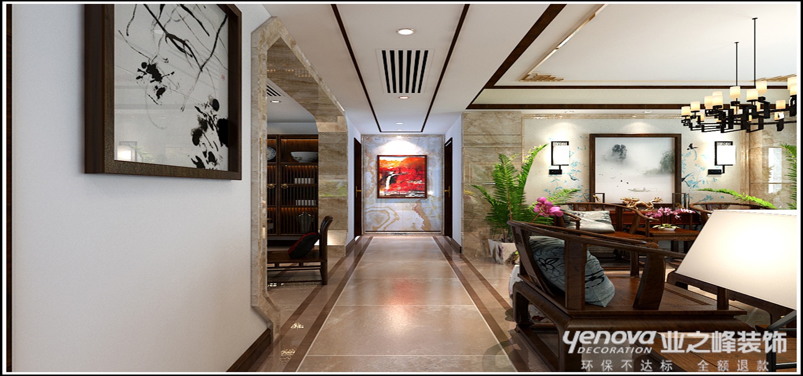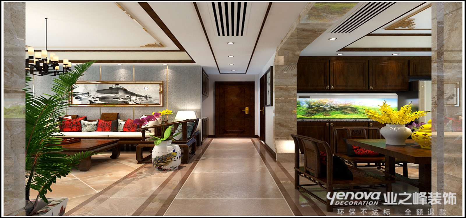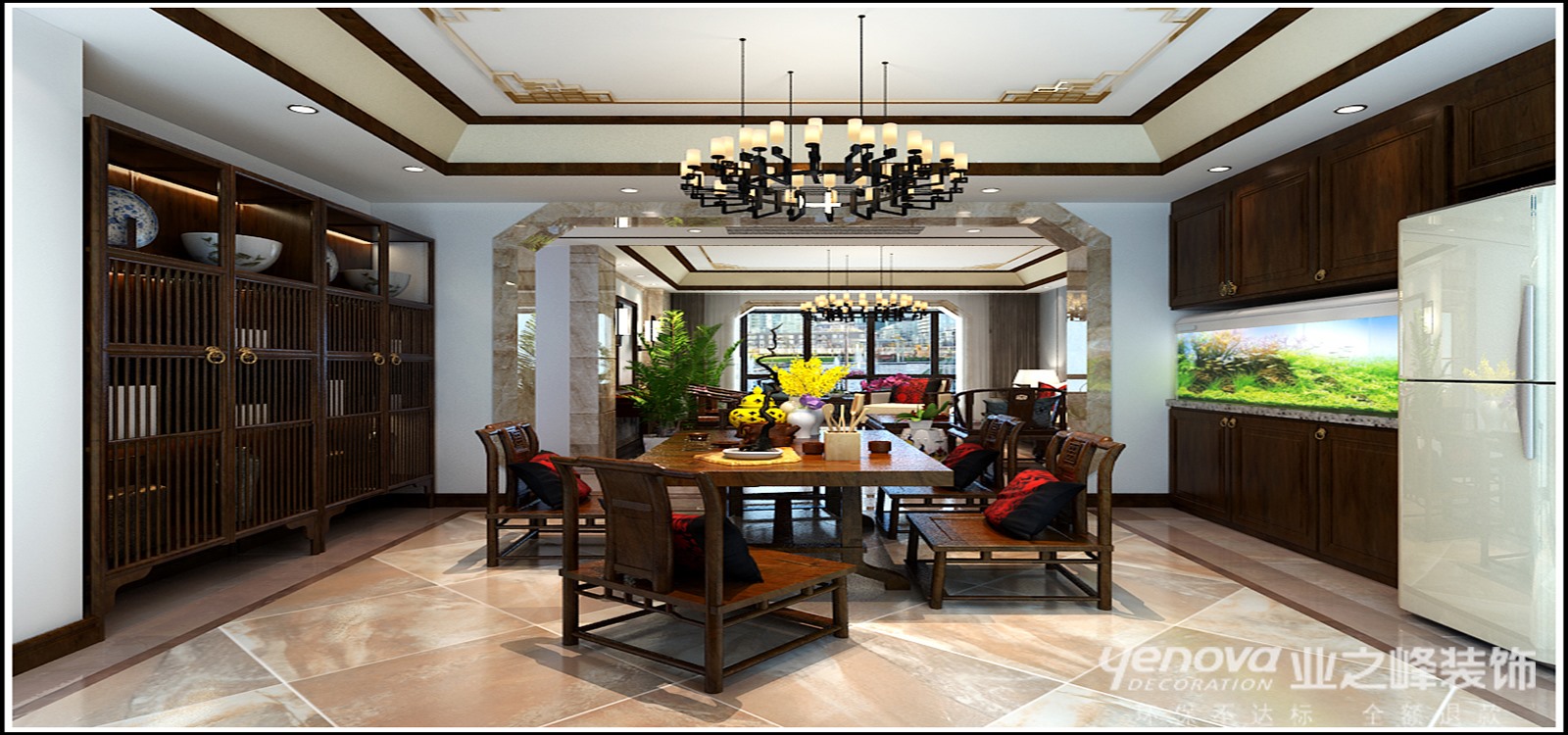 我国传统居室非常讲究空间的层次感。依据住宅使用人数和私密程度的不同,需要做出分隔的功能性空间,则采用"哑口"或简约化的"博古架"来区分;在需要隔绝视线的地方,则使用中式的屏风或窗棂。通过这种新的分隔方式,单元式住宅就展现出中式家居的层次之美。