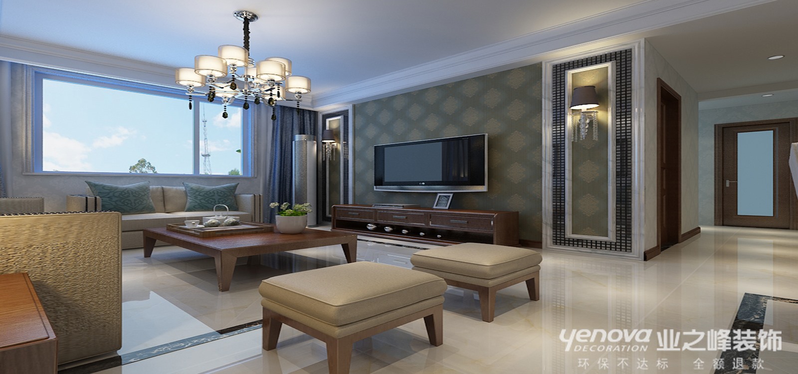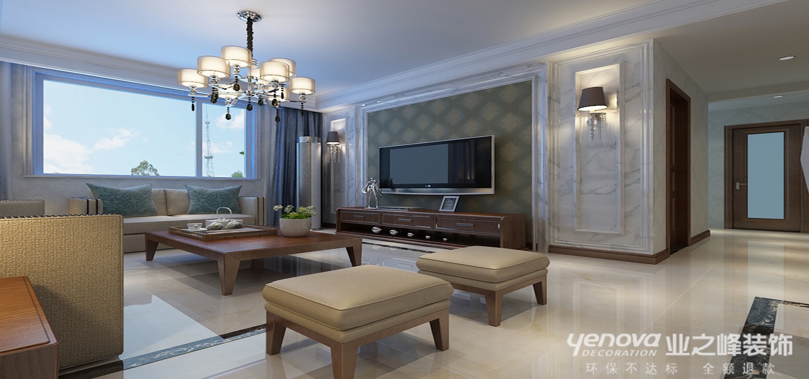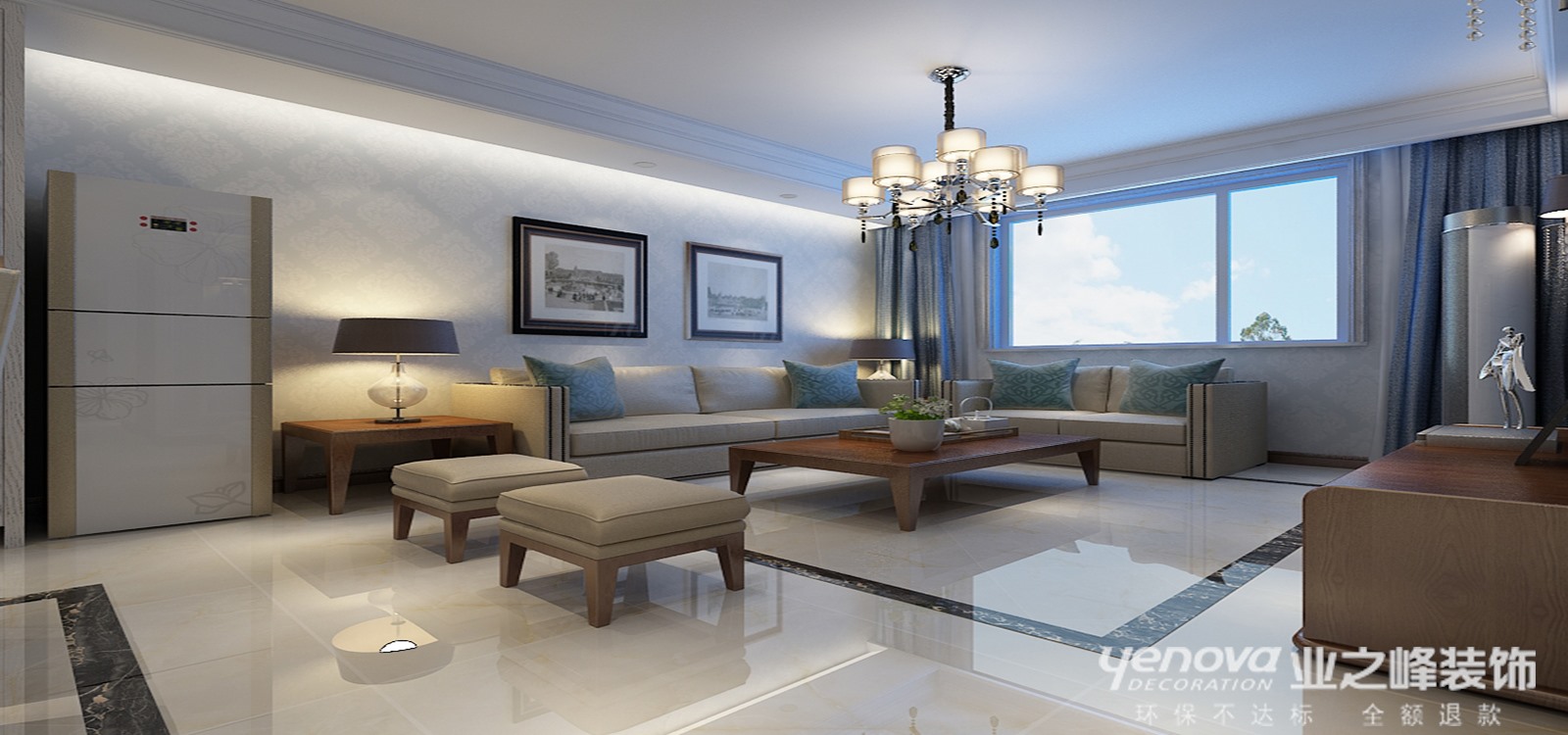 简欧风格的核心是去繁就简,留下简单的线条和几何图案。客厅中地毯的图案相对繁琐与各家具的相对简洁 形成了鲜明的对比,使客厅简洁而又不失趣味。