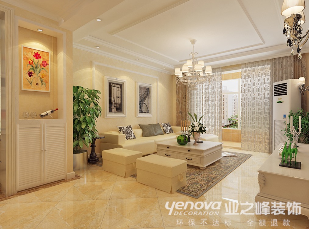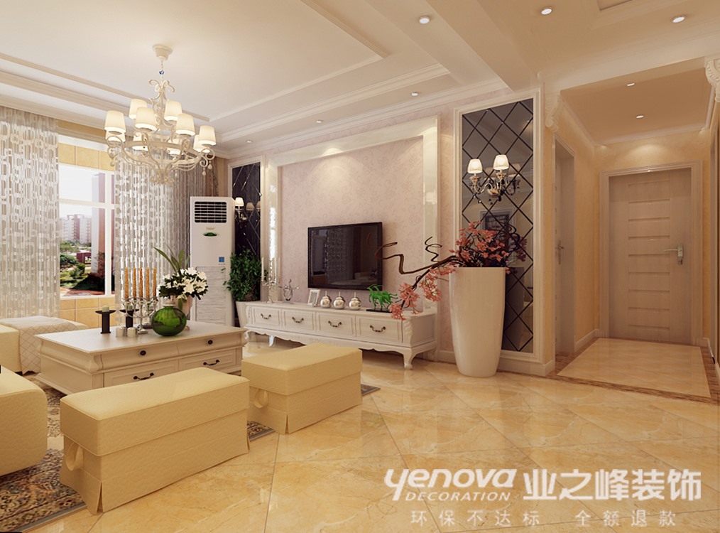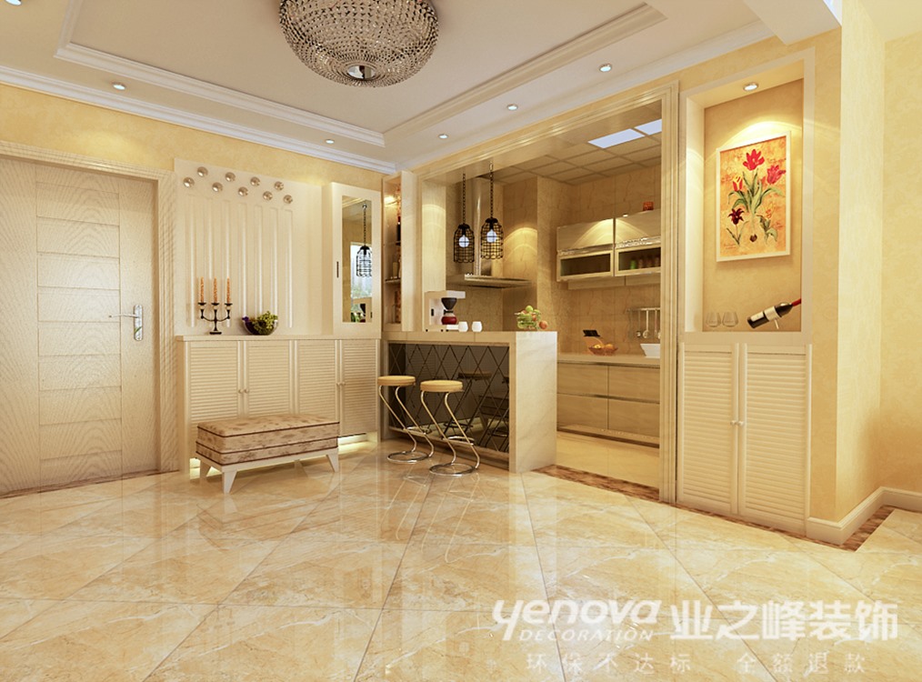 本案电视背景墙的设计是整个住宅空间的亮点,运用了石膏板、大理石、灰镜、壁纸装饰材料,简单的装饰材料,营造出现代化空间。另一个亮点就是厨房,由于客户是年轻人,对生活品质有一定的要求,于是就有了开放式厨房的想法。吧台用灰镜和大理石配合,与电视墙相互呼应。本案色彩的运用以米色为主,稳重大气、品位高雅、对比平衡、对称呼应,主色调与整体空间环境和谐统一。本案主卧的设计,顶面采用规则的石膏板吊灯和筒灯,床头背景都运用了壁纸硬包等材料。从而营造一个现代化的简单,舒适主卧空间。客卧的设计,主要以壁纸,石膏线条为只要装饰材料。