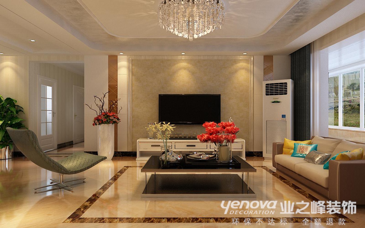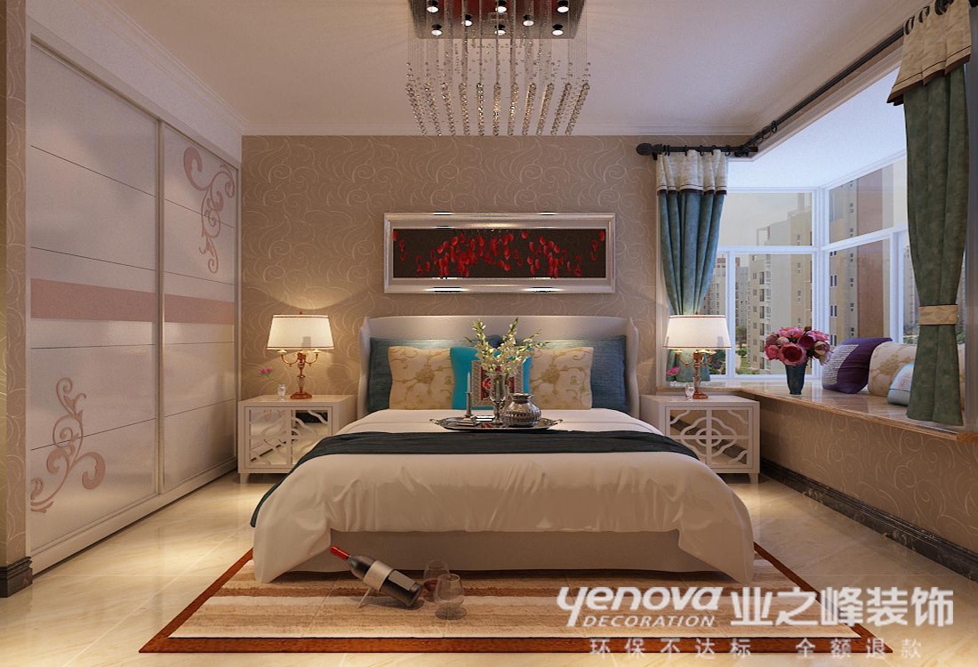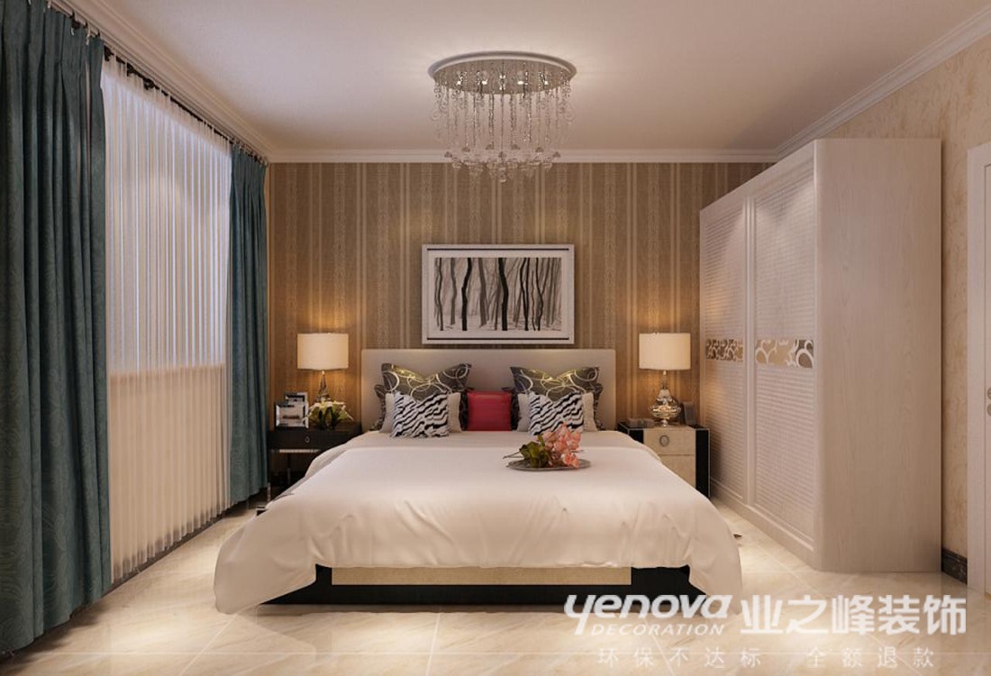 本方案定位于现代风格风格,整体色调采用的是暖色调,显得温馨优雅。居室中以局部造型和壁纸相结合,整体显得大气却又不失其优雅;电视背景墙使用石膏板上墙、茶镜和壁纸相结合使其整体显得更加的大方优雅;从设计手法来看采用了先整体考虑后局部划分,使整个空间得到了巧妙的衔接和统一。