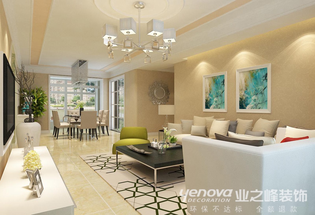 本方案定位于现代风格,整体的把控使整个空间具有整体感,分区明确,在地面的铺贴设计中和吊顶交相呼应,过道垭口处的设计很有设计感,一个厨房空间的扩大增加了厨房的利用率,进入卧室的垭口具有围合的寓意,使财气和福气不外泄。使整个现代风格的空间充满了既现代又传统的个性,并且充满了韵味。